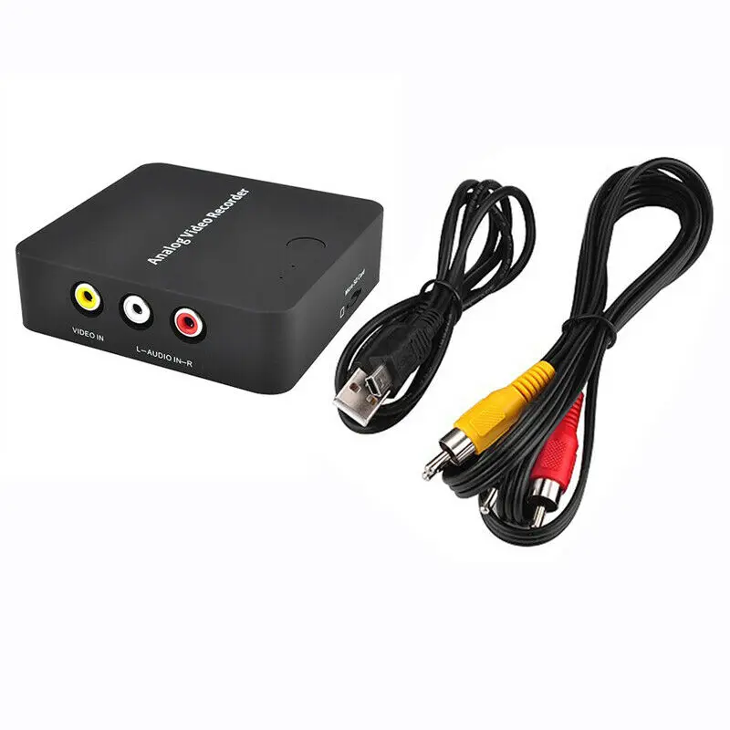 AV видео записывающее устройство, вы можете конвертировать ваши старые видео ленты или видеокамеры в цифровой формат одним нажатием кнопки, записывать и цифровой видео из VHS, видеомагнитофона, DVD слоев, DVR, видеокамеры, Hi8 и игровые системы. Не требуется компьютер, записывает видео непосредственно на карту Micro-SD.