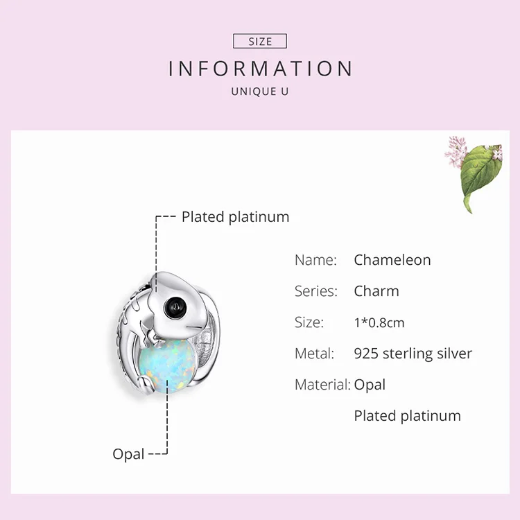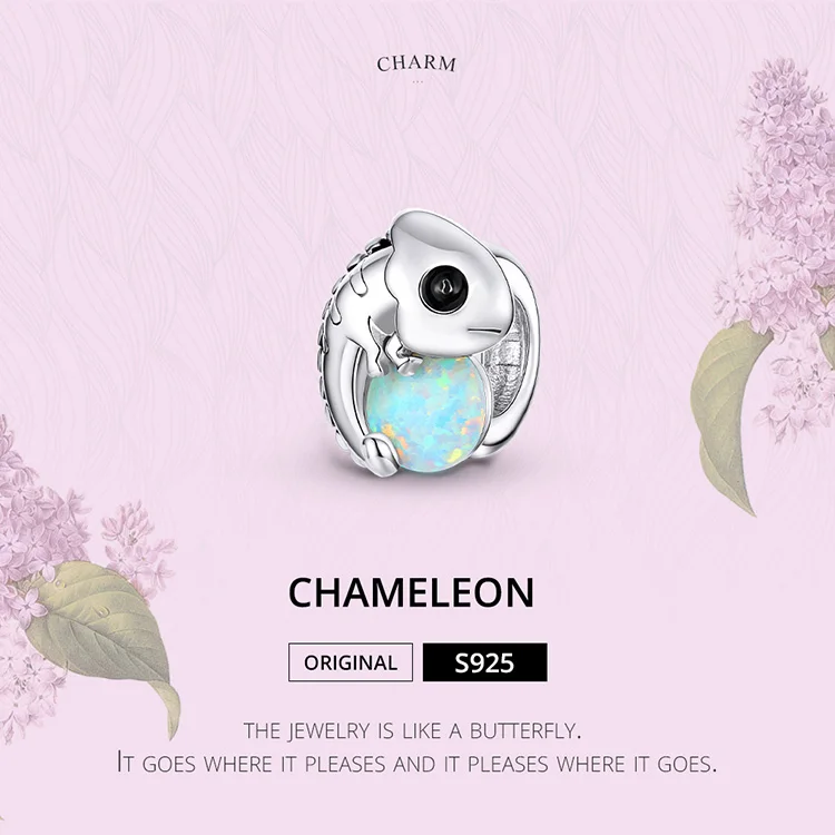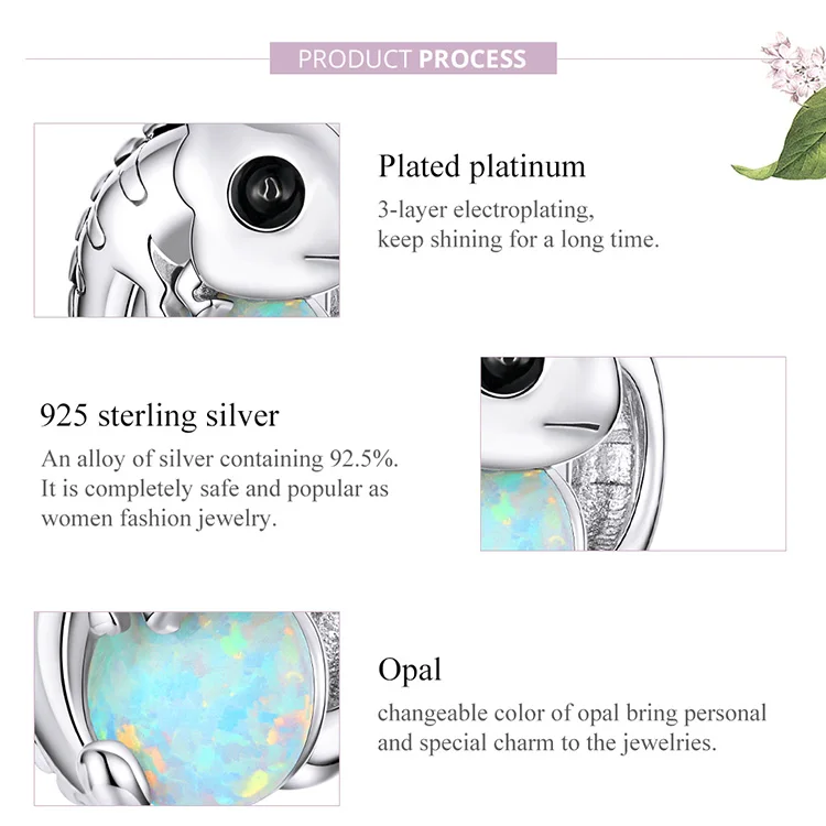 Вдохновленный милым хамелеоном, который хорошо скрывает, он показывает таинственное очарование тропического леса. S925 + покрытая платиной + полупрозрачный опал + эмаль Размер: 1*0,8 см