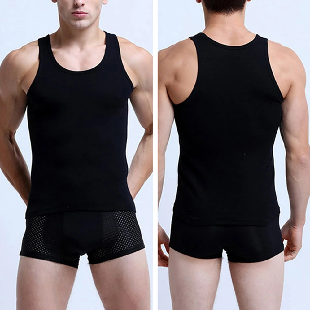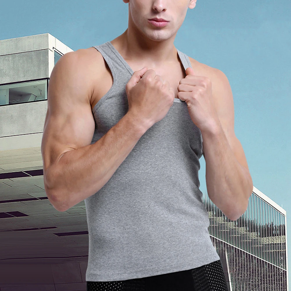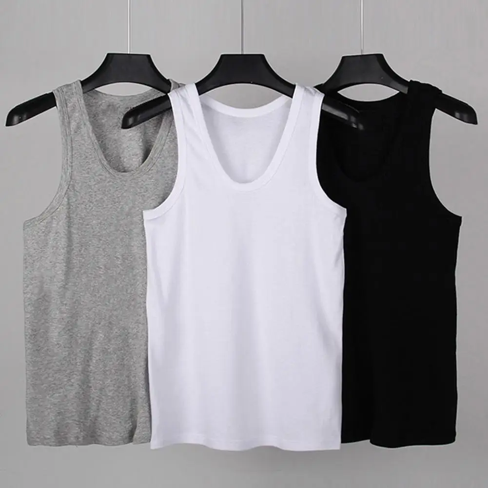 Спортивный мужской однотонный хлопковый жилет с низким вырезом без рукавов, дышащий топ на бретелях
