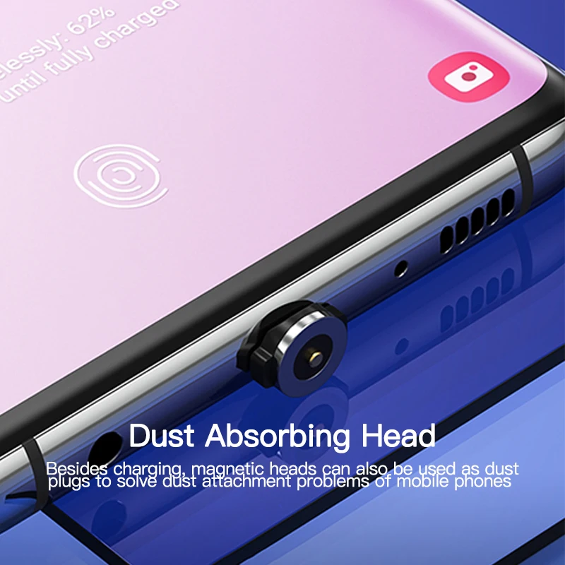 В дополнение к зарядке магнитная головка также может использоваться в качестве пылезащитного штепсельного вилки для решения проблемы адгезии пыли мобильных телефонов