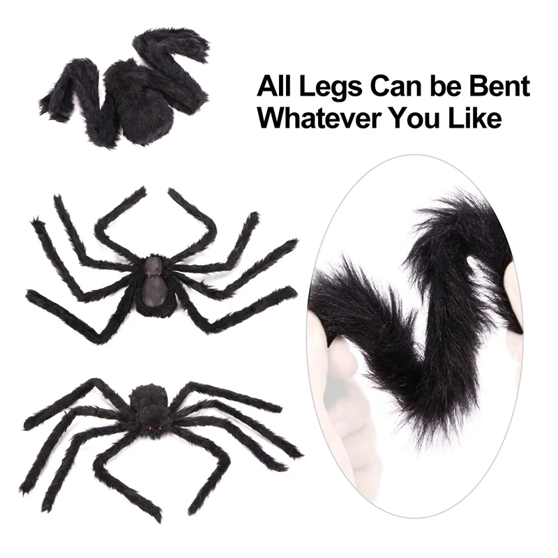 High Quality-Hand-knotted with Polyeter material,the long legs are higly bendable and easy to pose.Bend them the way you like and hang to anything you need.Scary furry spider decor,very real looking.Look better with giant spider webs and strechable fake cobwebs