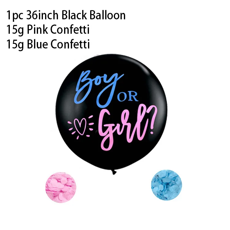 Партийные воздушные шары для мальчиков или девочек, 36 дюймов, черные воздушные шары, розовые, синие конфетти, украшения для детского душа, вечевечерние