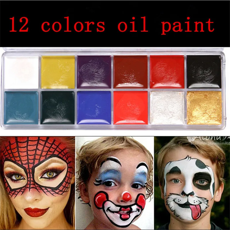 12 видов цветов картина для тела, игровой клоун, боди-арт, живопись маслом, тату, Хэллоуин, вечеринка, макияж, косметика, боди-картина