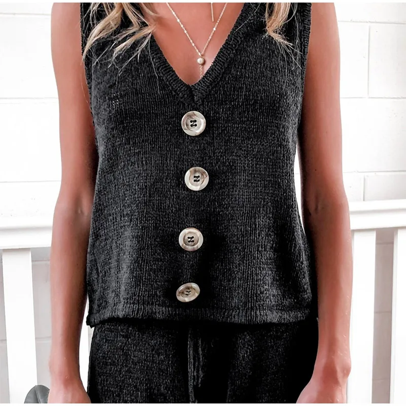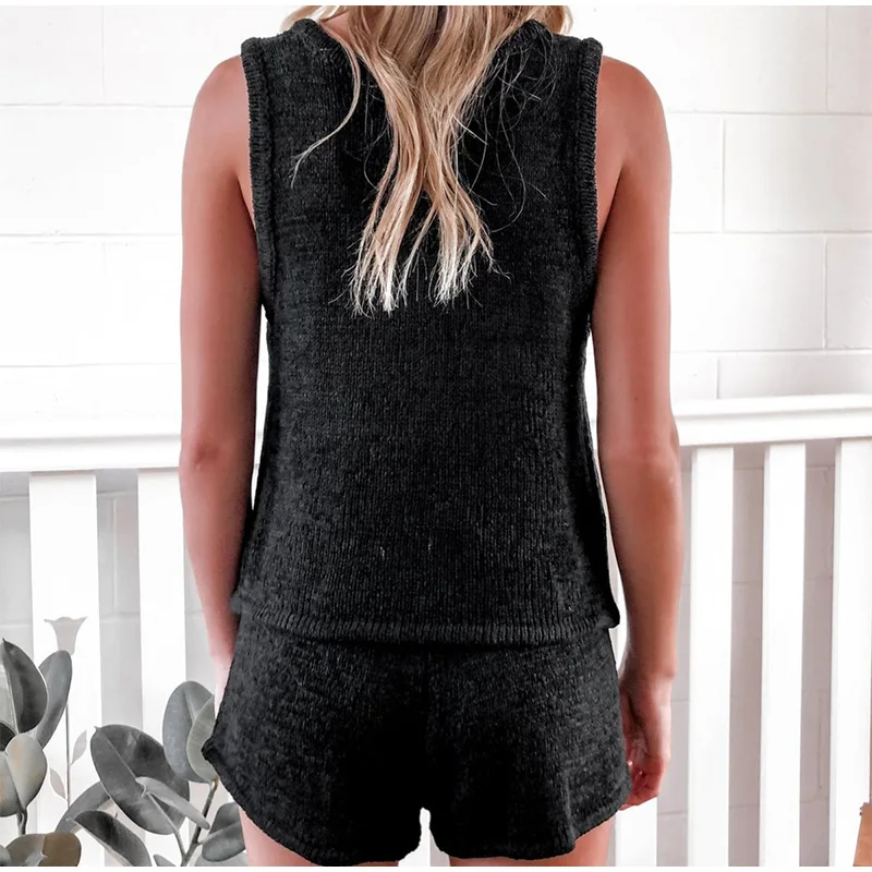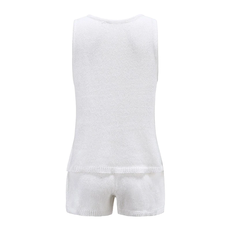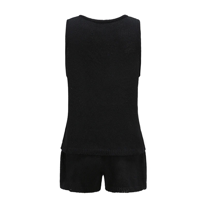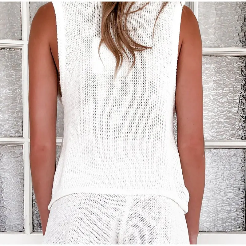 Летний вязаный ажурный женский жилет, костюм с пуговицами, v-образным вырезом, без рукавов, жилеты и шорты, Женский комплект, 2021, для отдыха, Женский комплект из 2 предметов