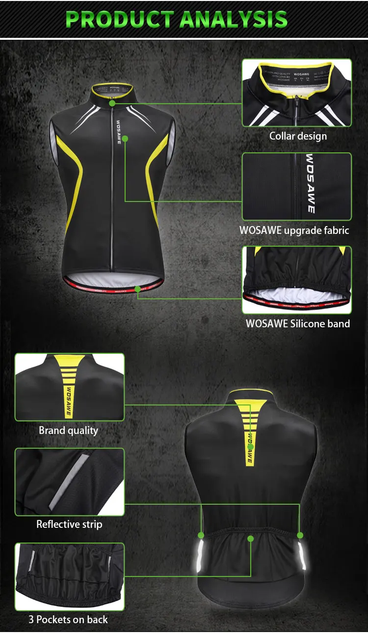 Эта облегающая велосипедная жилетка так же удобна, как и функциональна. Изготовленная из мягкой и эластичной уникальной высококачественной ткани WOSAWE обеспечивает высокую воздухопроницаемость и отличный комфорт для кожи.