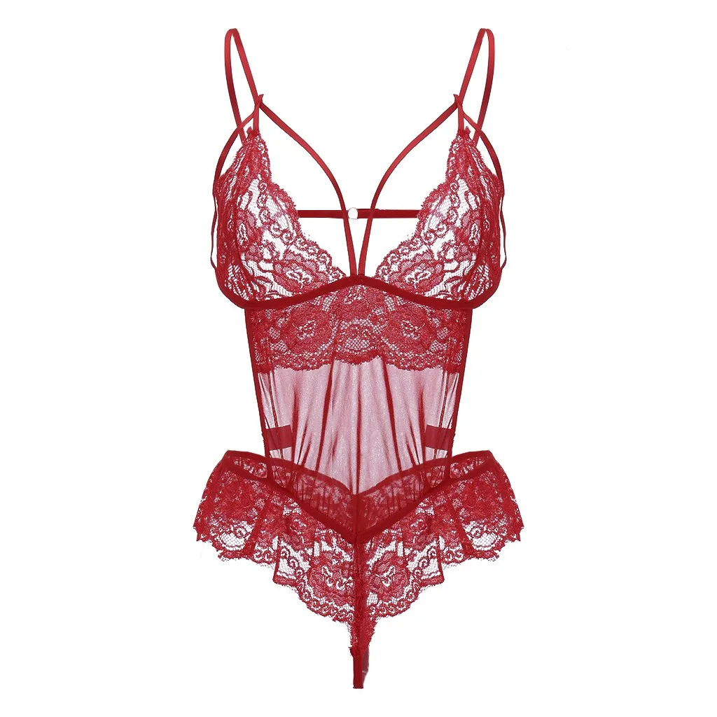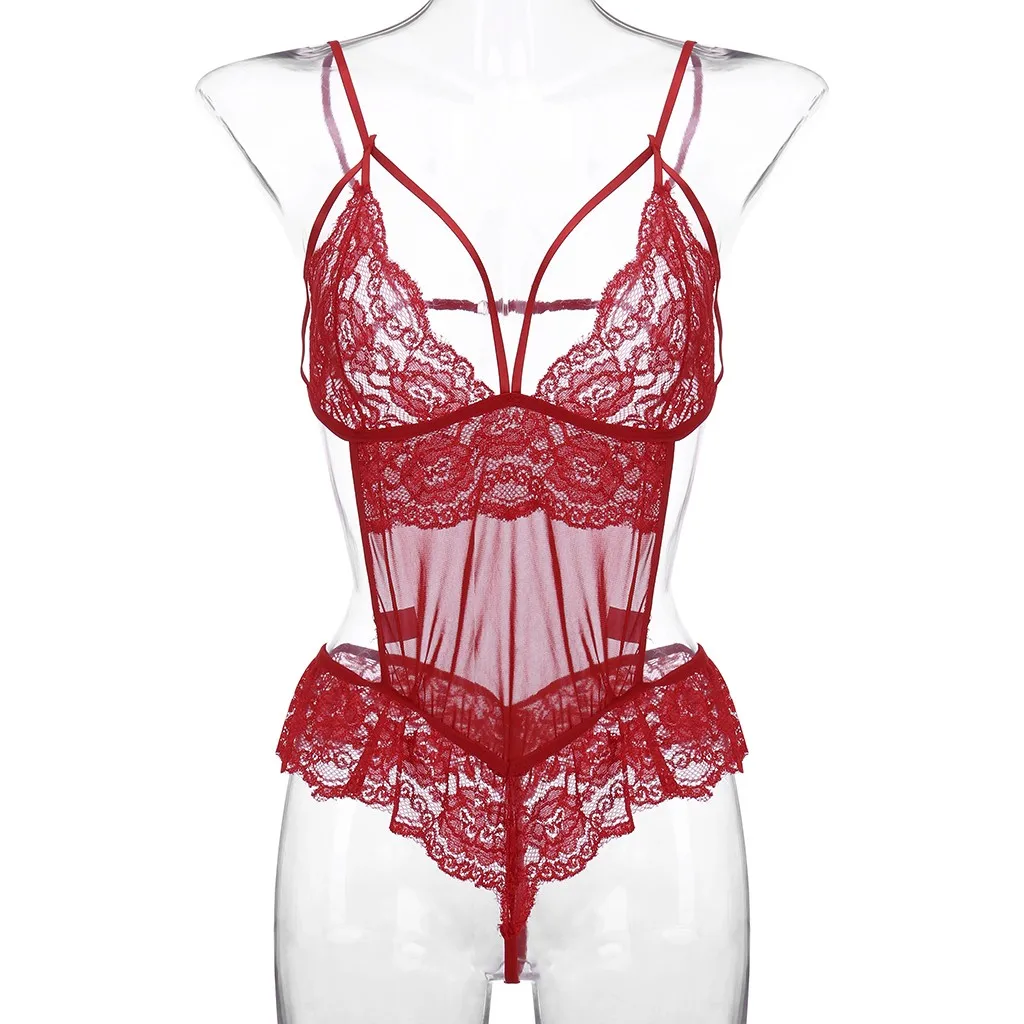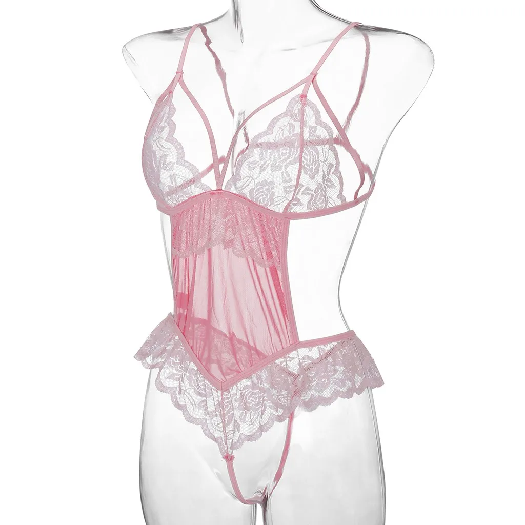 Новое сексуальное Сетчатое кружевное женское прозрачное боди с открытой спиной Тедди нижнее белье-комбинезон