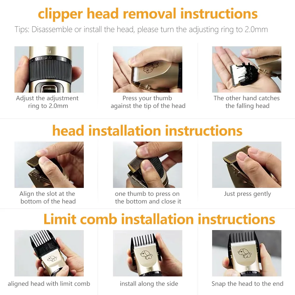 Простота в использовании:Тонкие зубы, пять скоростей. Легкий и эргономичный дизайн позволяет легко держать и работать, чтобы обеспечить гладкий и удобный уход. Даже вы новичок, с нашим питомцем машинки для стрижки волос вы также можете достичь красивого вида вашего питомца.