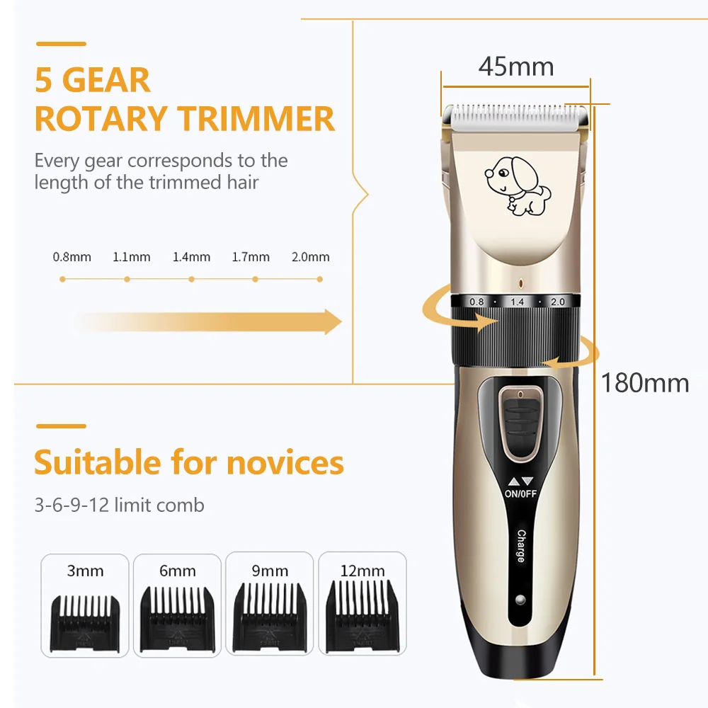 Не беспокойтесь ли вы побрить волосы своего питомца и потратить время и деньги в зоомагазине? Вы можете выбрать хороший триммер для домашнего использования для бритья волос вашего питомца. Большая мощность, низкий уровень шума, тонкие зубы, пять скоростей, машинка для стрижки волос может решить проблему для всех домашних животных.