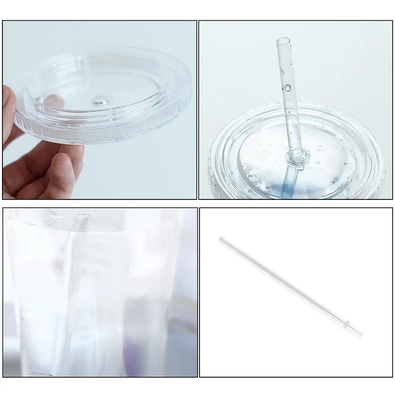 1. Новый пластиковый стакан с крышкой и соломой, большое отверстие для легкого наполнения кубиков льда или любых напитков.