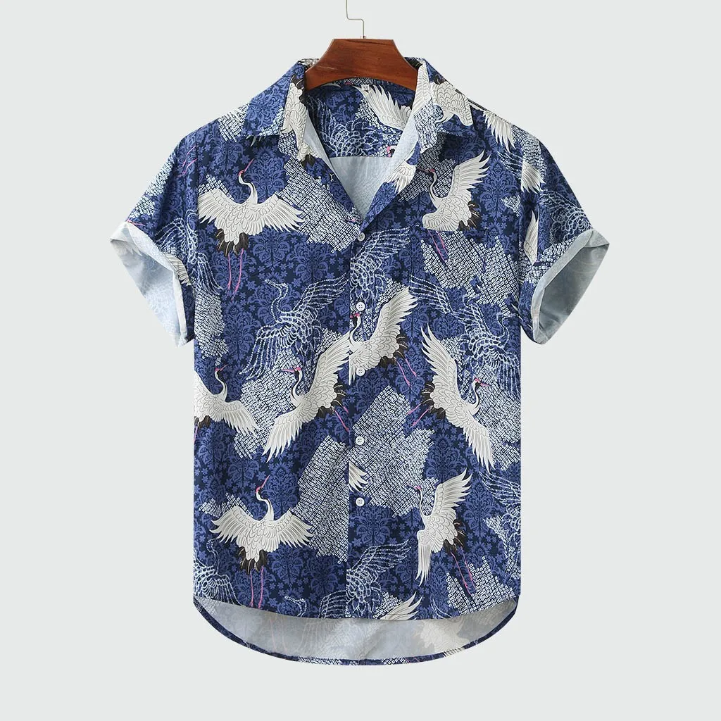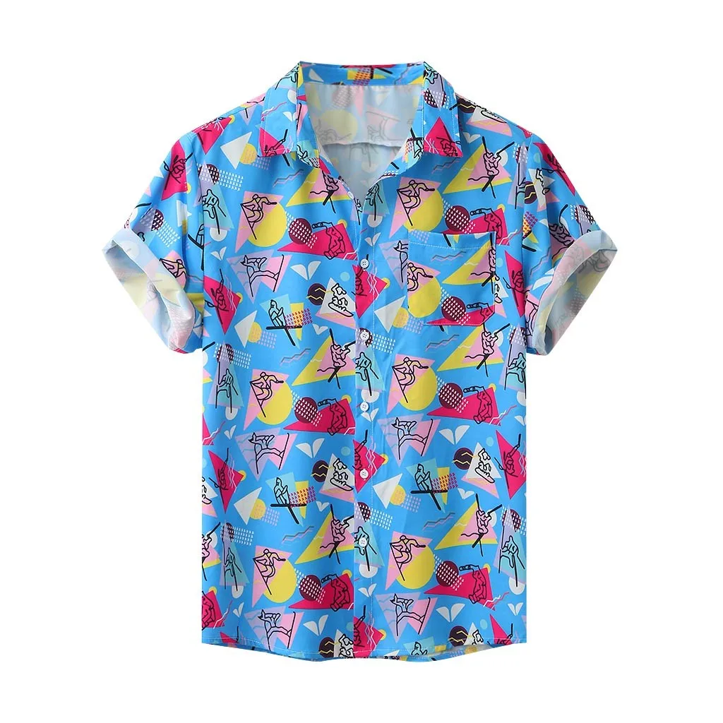Мужская разноцветная Летняя Повседневная рубашка с коротким рукавом на пуговицах