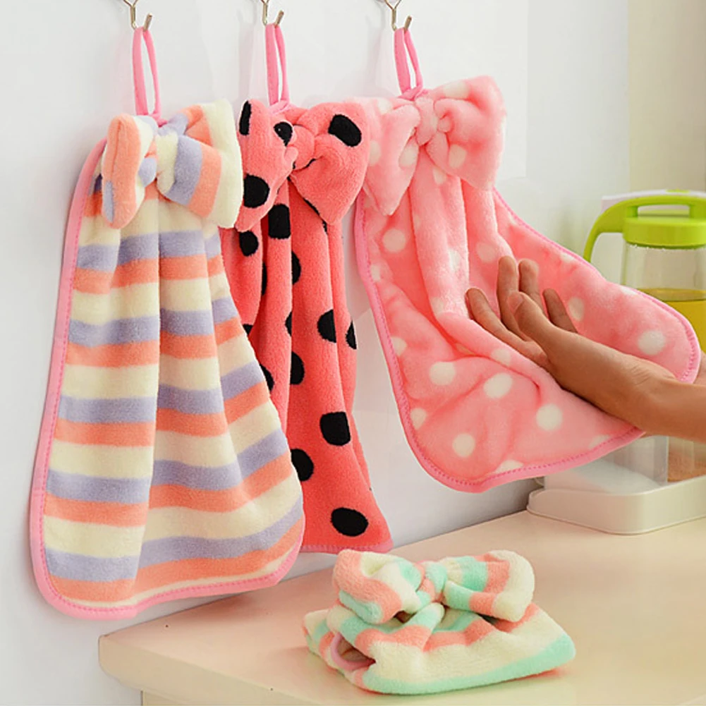 Ванная комната, кухня, детское полотенце для рук, мягкое плюшевое полотенце с бантиком, подвешивание, полотенце, хлопок, микрофибра, платок