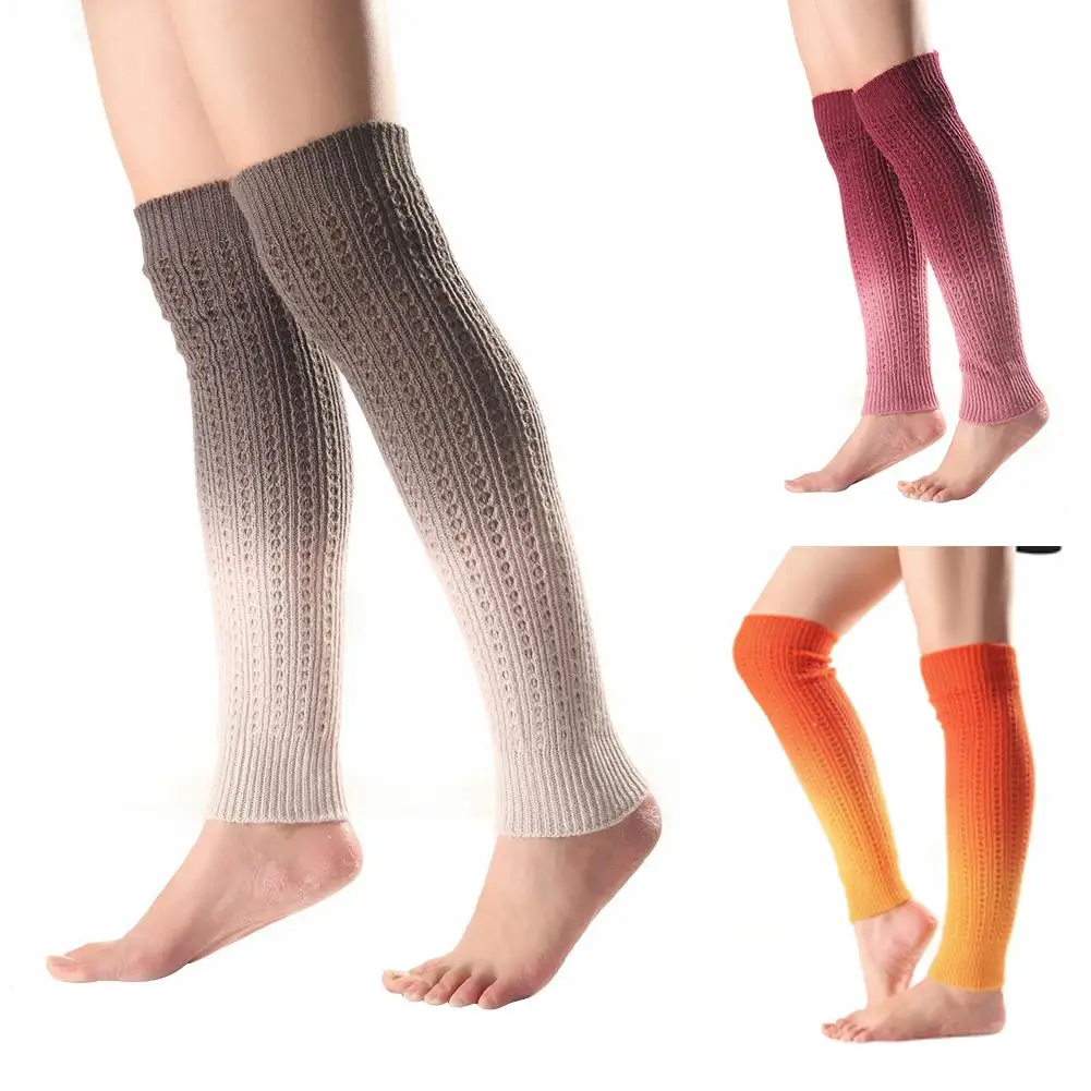 Женские носки для обуви до колена с градиентом, зимние вязаные гетры без ног