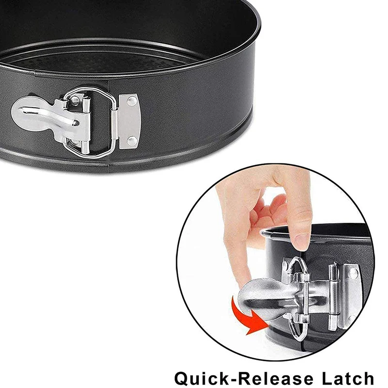 Антипригарное покрытие:Антипригарное покрытие для легкого высвобождения. Пружинные защелки, обеспечивающие плотное герметичное уплотнение, не дают выпечки беспорядок с легкой очисткой. Ваши пирожные всегда будут выходить идеально.
