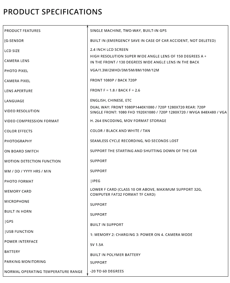 Угол съемки: 170 ° Пиксели: 12 миллионов Вес: 450 (г) Емкость для хранения данных: максимальная поддержка 64G Время хранения данных: около 8 часов Интерфейс передачи данных: USB/HDMI, USB, HDMI Скорость передачи: 30 м/с Источник питания: 12 В/1,5 А Напряжение: 12 В Номинальный ток: 1,5 А