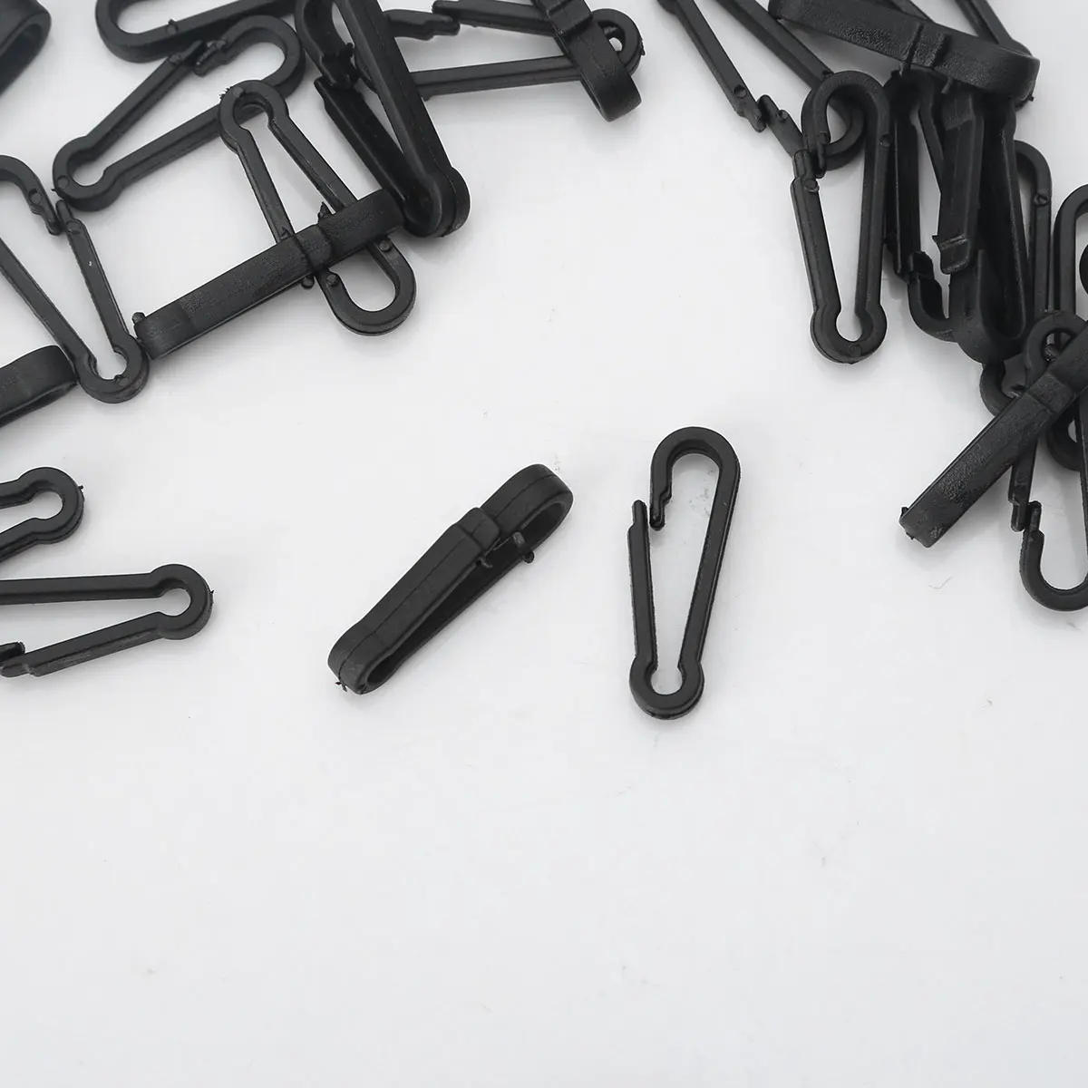 100Pcs Snap Clip Hooks Mini Carabiner Buckle Paracord Backpack Straps Bag Parts. Made of plastic, sturdy and durable, lightweight, hard to break, long service life. The snap holds a tight grip and secures your item from falling out, close very tightly. Use these clasps to create your own lanyards, keychains, hanging ornaments, and more. Can be used as a plastic toy chain, backpack clasp hook, wallets hooks, etc.