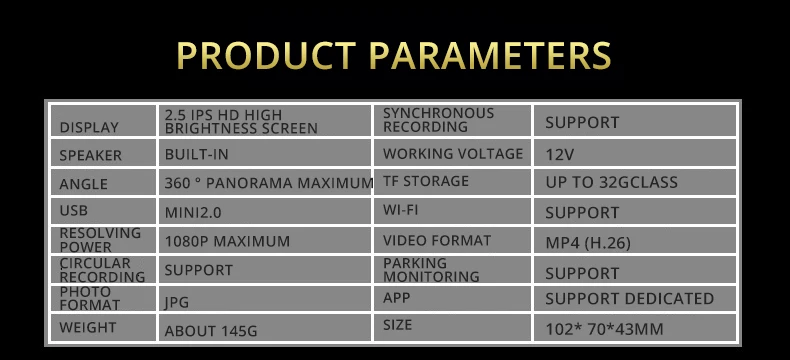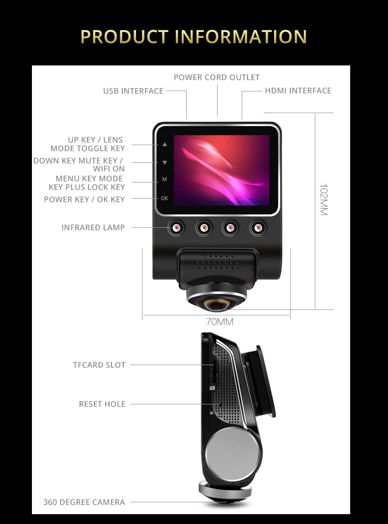 Угол съемки: 170 ° Пиксели: 12 миллионов Вес: 500 (г) Объем хранения данных: максимальная поддержка 32G Время хранения данных: около 8 часов Интерфейс передачи данных: USB/HDMI, USB Скорость передачи: 30 м/с Мощность питания: 12 В/1.5A Напряжение: 12V Номинальный ток: 1.5A