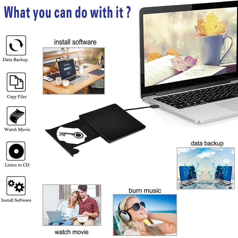 Ультратонкий дизайн, вы можете поместить этот внешний CD диск в дорожную сумку, в то время как мы путешествуем, мы также можем наслаждаться музыкой в фильме и так далее.
