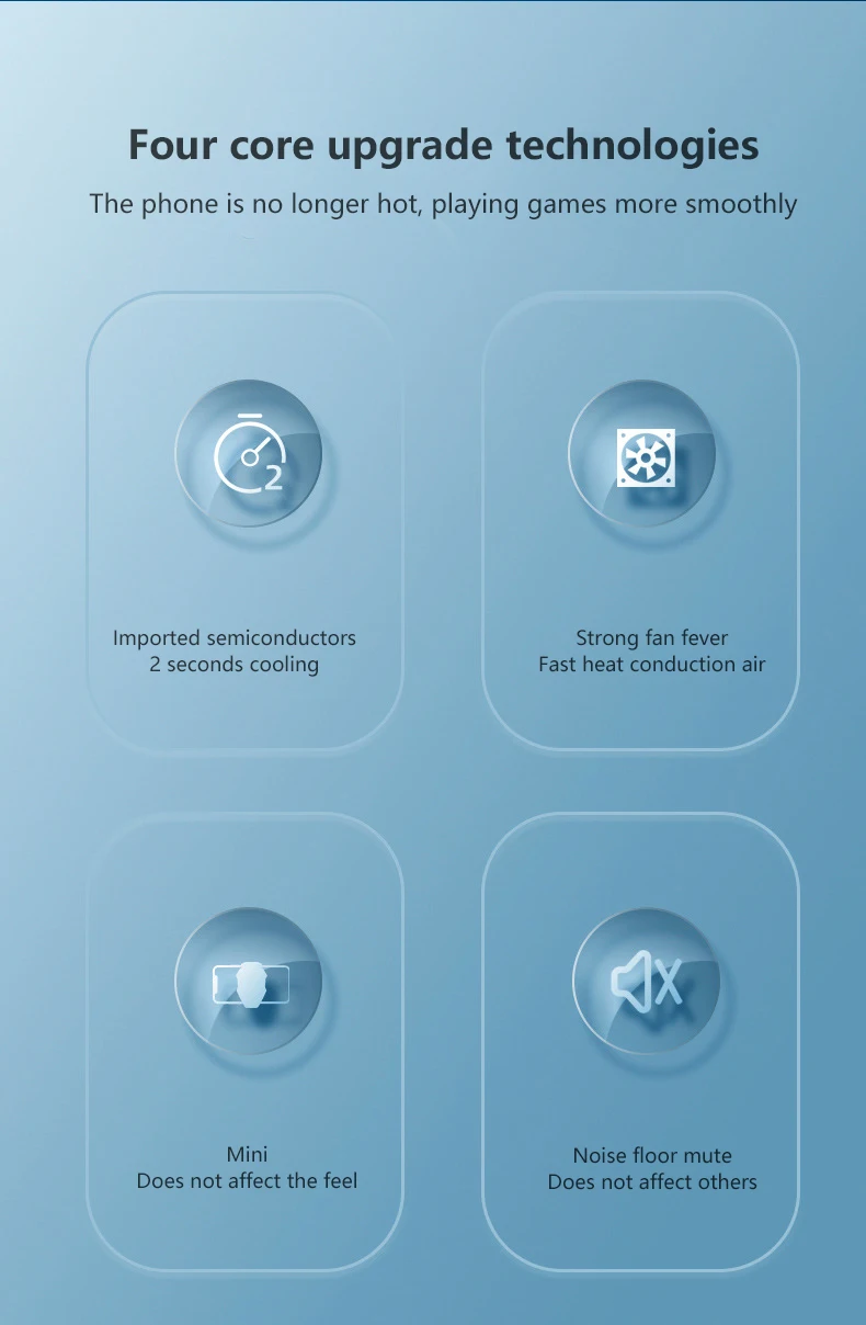 Улучшенное охлаждение уменьшает в 30 раз быстрое охлаждение, эффект использования ледяных зажимов замечательный, и мобильный телефон не горячий сразу.