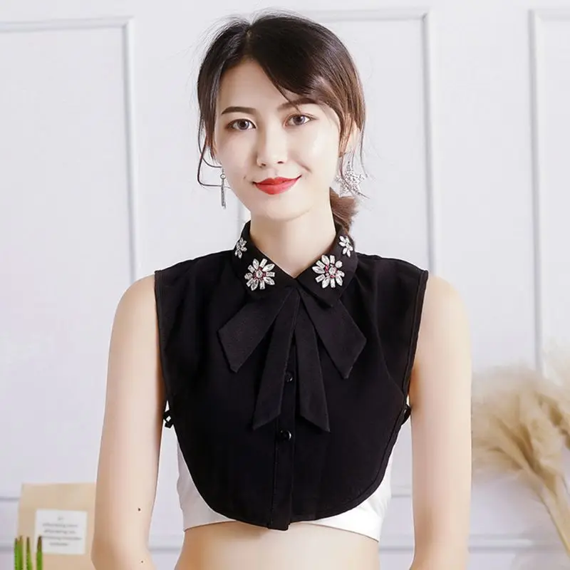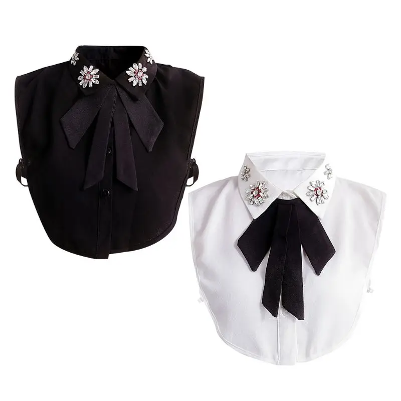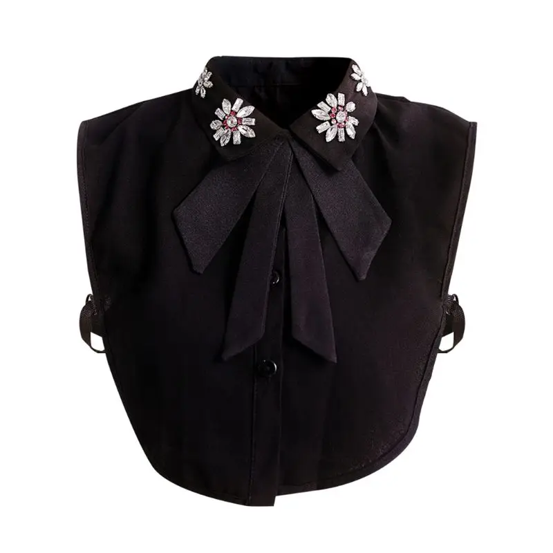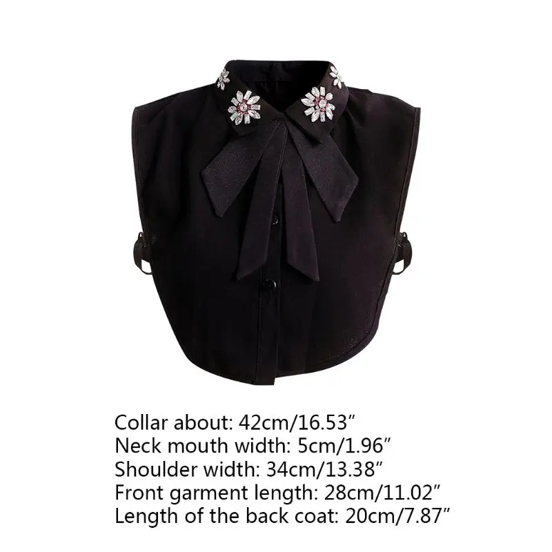 Имитация алмазных бусин Декор воротник отворот, со съемным черный галстук-бабочка ремень в центре, модный и красивый.