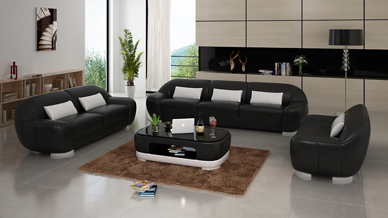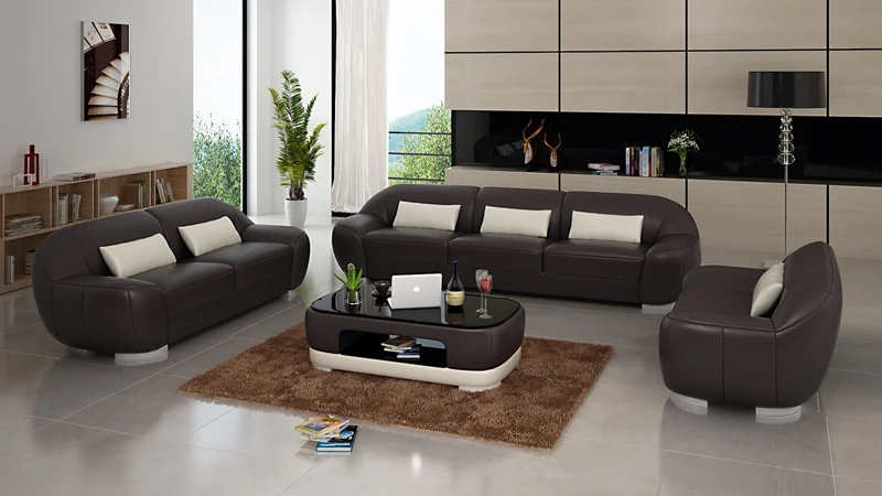 Европейский стиль гостиной комбинации набор верхний слой кожаный диван мебель