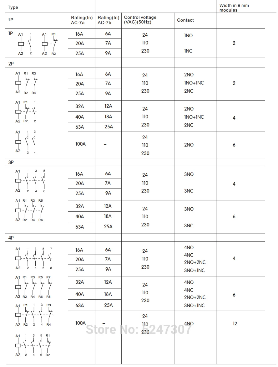Это 2P 220-230V 50/60HZ 2NO, 1NO 1NC, 2NC вы можете выбрать