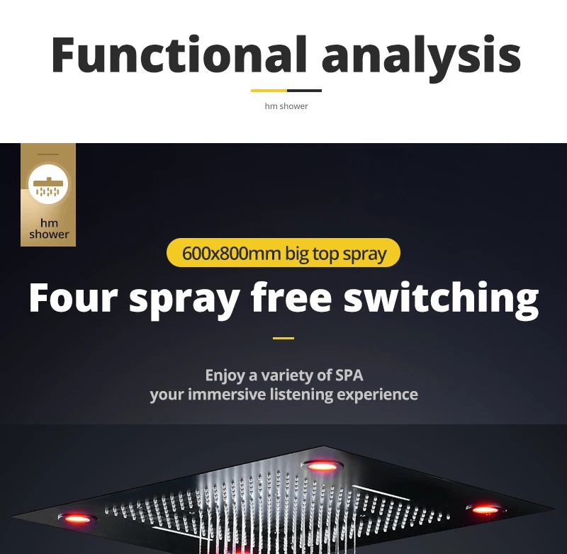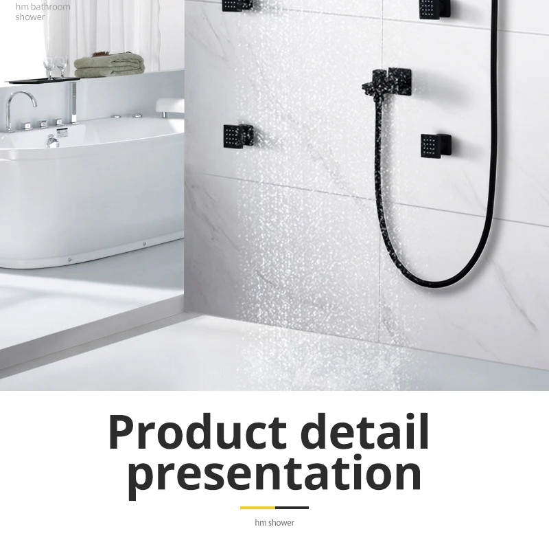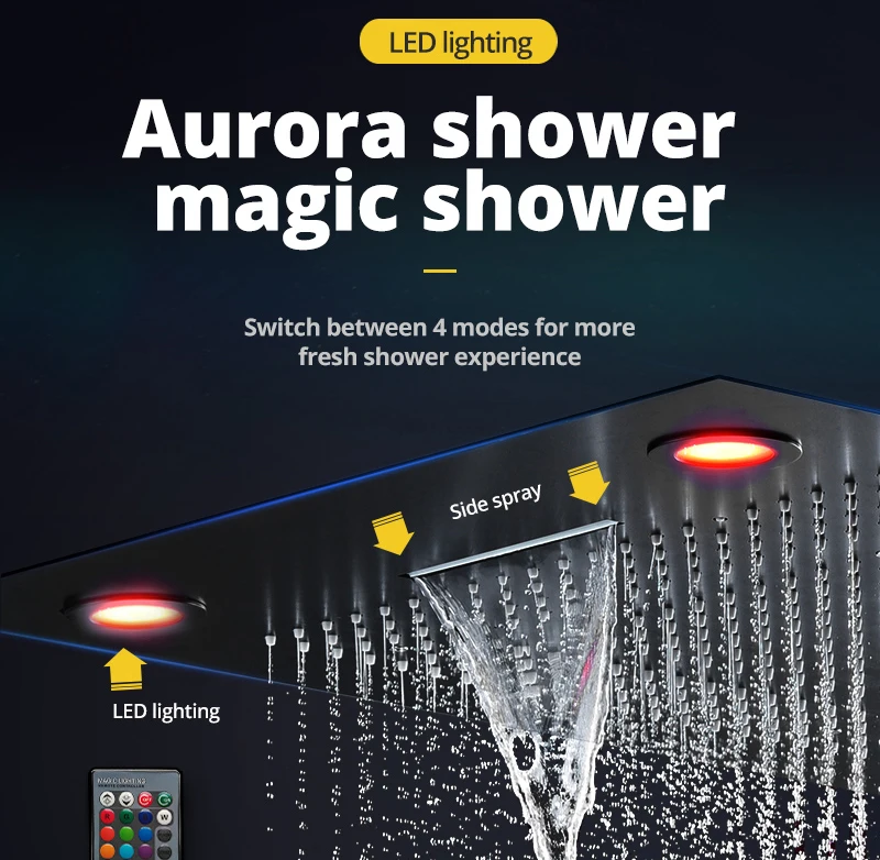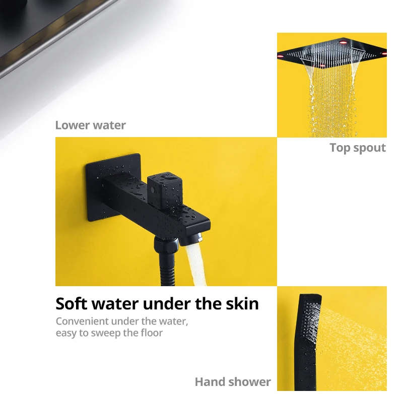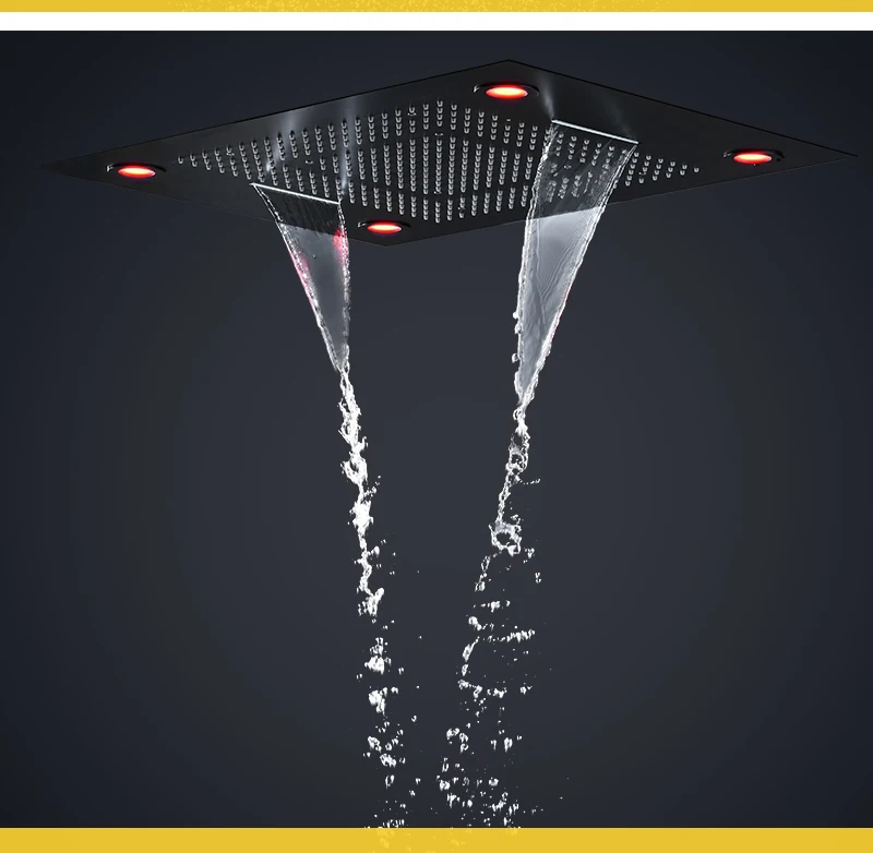Матовый черный классический светодиодный душевой кран с водопадом, термостатический клапан, 6 функций, смеситель для душа
