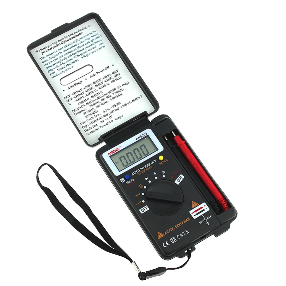AN8203-это цифровой мультиметр с питанием от аккумулятора, ture-rms, автозапуском с 3999 счетами, ЖК-дисплеем и подсветкой. Может использоваться для измерения напряжения переменного/постоянного тока, сопротивления, емкости, частоты, рабочего цикла, диодов и непрерывности.