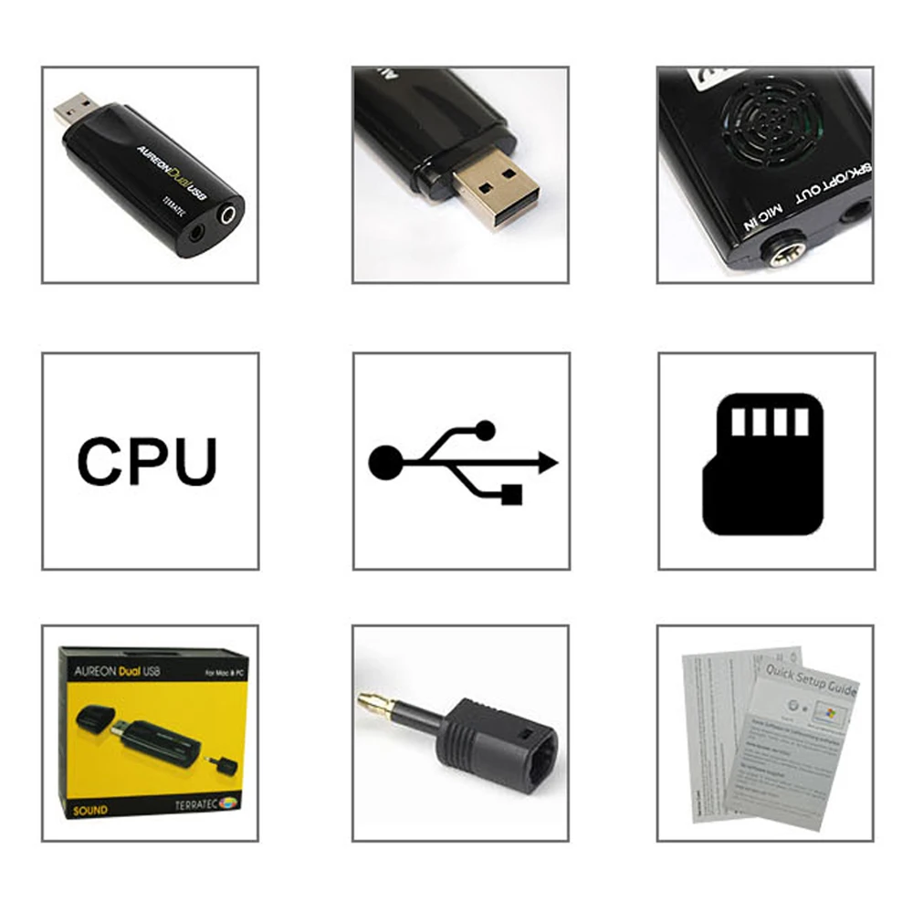 Название продукта: TerraTec Aureon Dual Категория: звуковая карта Функция: профессиональная запись Интерфейс: USB Вес брутто продукта: 230 г Выход карты расширения: USB2.0, USB3.0 Тип: Внешний Канал: 2 Объем упаковки: 16*20*5 см