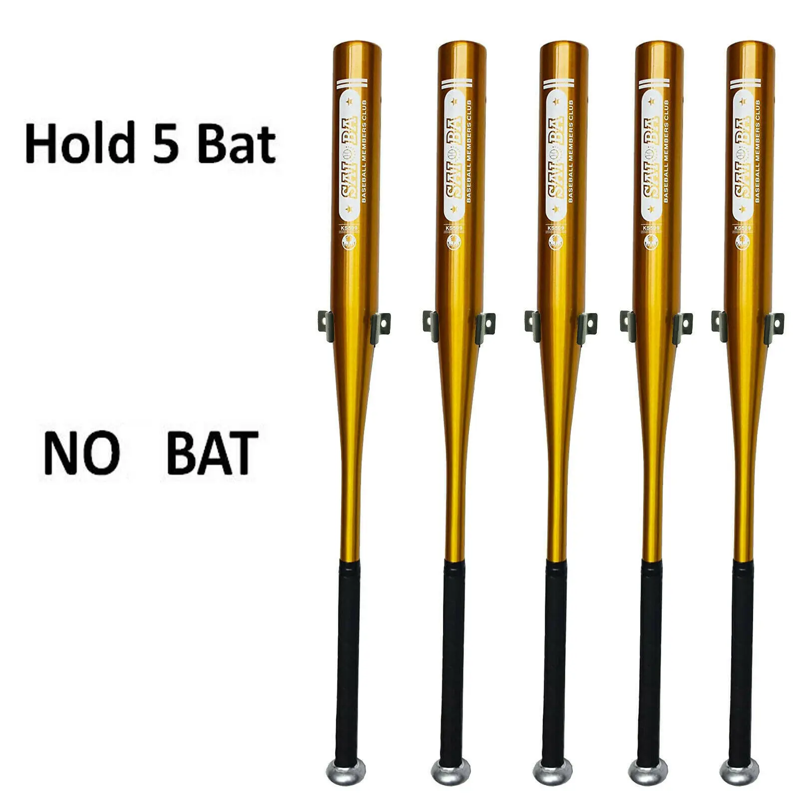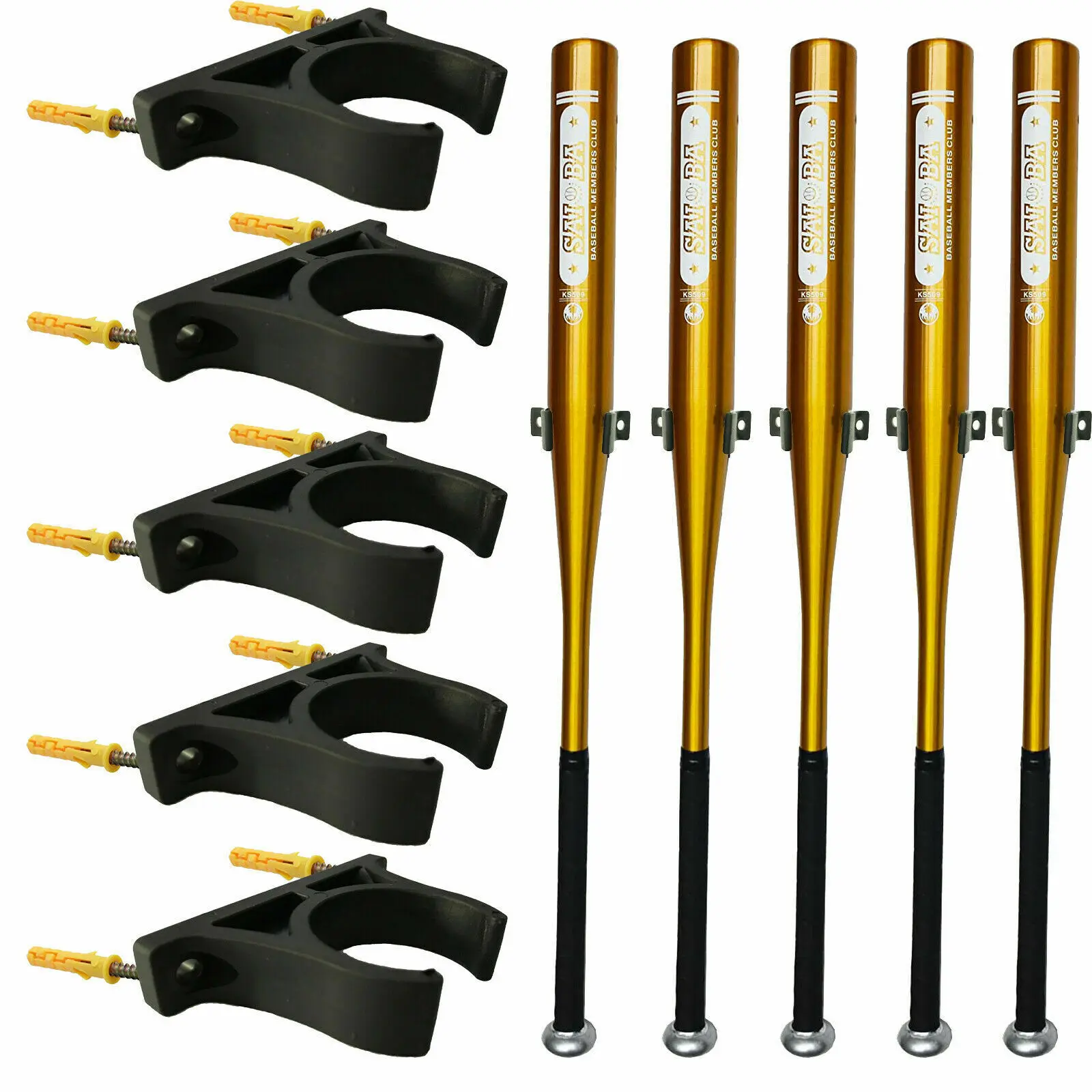 100% Brand new and quality. Only 5 wall rack - No bat included. Screws Included. Universal - Rack can be expanded, which fits most baseball bat body. Easy Installation- Two Pre Drilled Holes for easy installation. Hardware included. No Scratches - The wall mount is covered with rubber. While resting on the wall mount, Your baseball bat will be protected. Great Accent to Home Furnishing, Wall Mounted, Durable and Lightweight