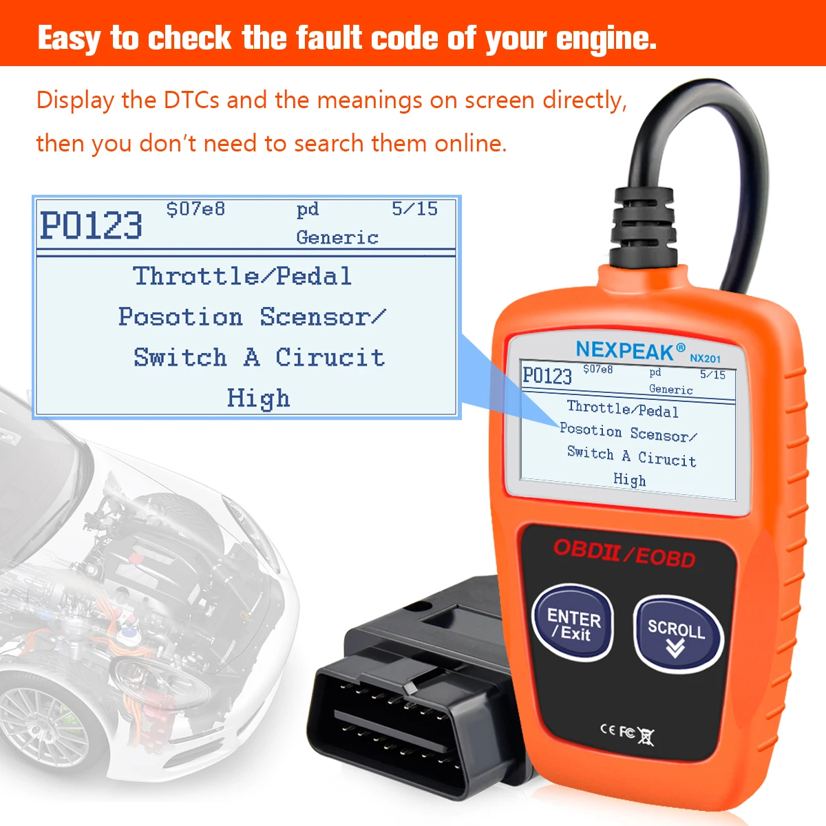 Работает со всеми 2000 и более поздними OBD II совместимыми с американскими, европейскими и азиатскими транспортными средствами. Легко определить причину