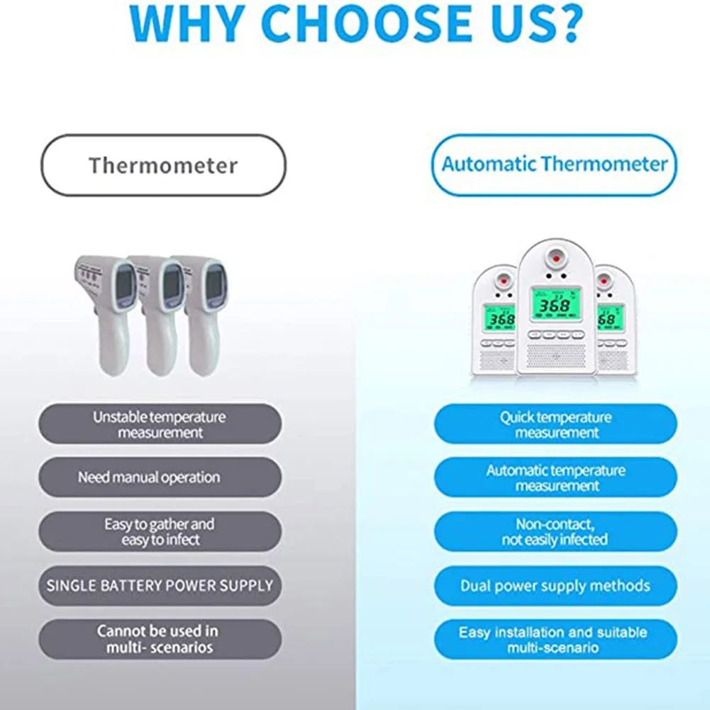 3.Бесконтактный считыватель:Чтобы сохранить безопасное расстояние, наш Бесконтактный инфракрасный термометр может идентифицировать высокотемпературных людей, не требуя физического контакта.