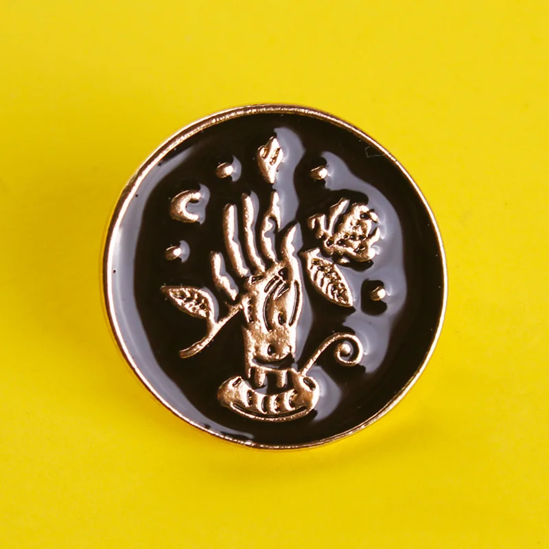 Golden Hand Hold Rose Brooch Badges for Backpack Enamel Pins Badge Clothes Lapel Pin Badges for Clothes Jewelry Gift Accessories