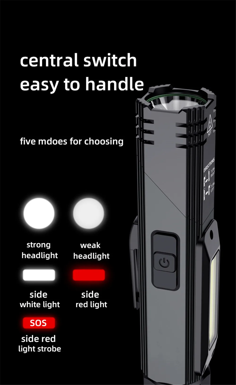 Режимы: 5 режимов (сильный светильник> слабый светильник> белый COB светильник> Красный COB светильник стробоскоп)