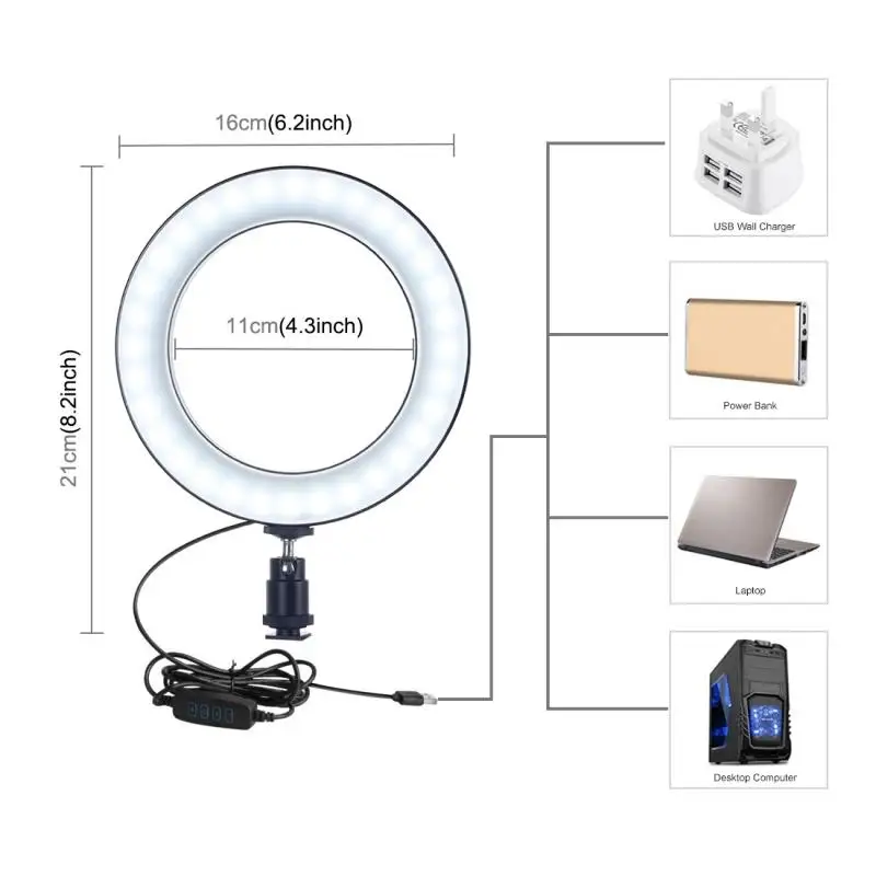 5. Usb-порты можно использовать с несколькими устройствами, такими как подключение хоста компьютера, ноутбука, мобильного питания и USB зарядного устройства. Вы сможете наслаждаться светодиодный светильник кольцо в любое время бесплатно.