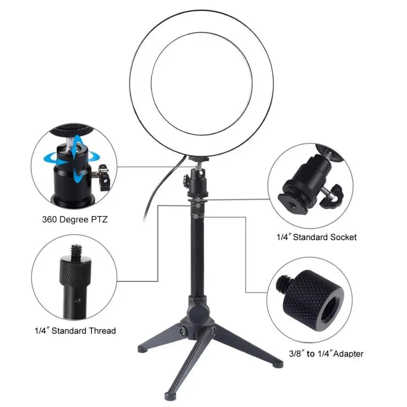 1. Светодиодный кольцевой светильник можно установить на держатель и взять его в любом месте, его также можно снять с стойки в любое время, шаровая Головка штатива может вращаться на 360 градусов, можно свободно регулировать под любым углом