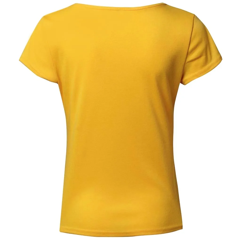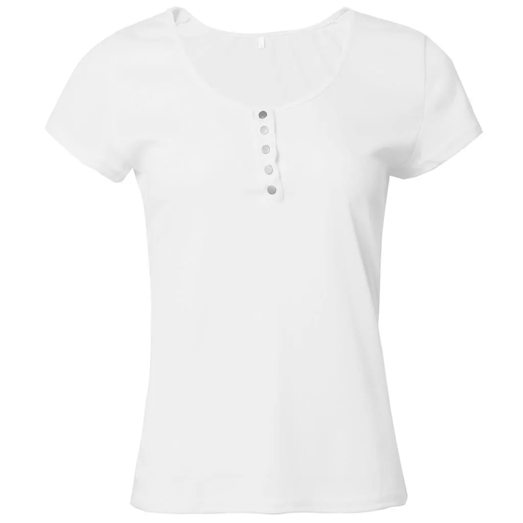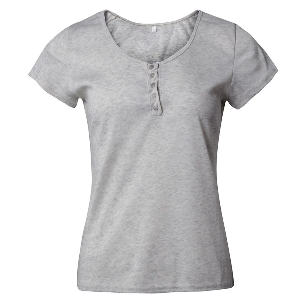 Женские футболки с v-образным вырезом на пуговицах с коротким рукавом