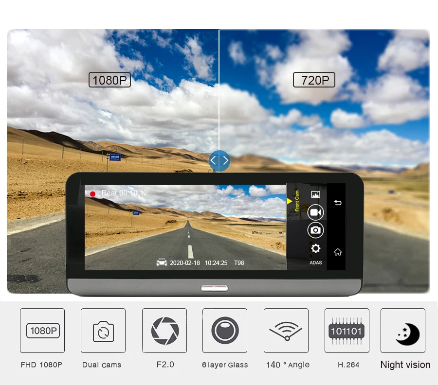 Установка приборной панели для автомобильной центральной консоли Более безопасный и стабильный способ установки, сохраните ваш автомобиль в оригинальном стиле 4G модуль для sim-карты (Интернет) + WIFI модуль маршрутизатор = серфинг быстрее Благодаря sim-карте 4G и встроенному Wi-Fi, независимо от того, где вы едете, вы будете наслаждаться удовольствием от интернет-серфинга, что делает его возможным для онлайн-навигации/музыки/кино и т. Д. Примечания: перед размещением заказа, пожалуйста, проверьте, находится ли ваша локальная сеть sim-карт ниже полос или нет: 4G/LTE:FDD,2100(B1)/1800(B3) В противном случае Автомобильный видеорегистратор не будет идентифицировать вашу sim-карту. Автопомощь мобильное приложение + Интернет-серфинг = удаленный монитор Благодаря уникальному мобильному приложению удаленного монитора «Car Assist» и подключению к Интернету, вы сможете дистанционно контролировать путь вождения автомобиля и то, что произошло вокруг вашего автомобиля, независимо от того, где вы находитесь. ADAS Plus делает вождение более безопасным Усовершенствованные системы сигнализации вождения (LDWS/ FCWS/FVMA), это полезные системы сигнализации, чтобы сохранить безопасность вашего вождения. Примечание: только версия 4G имеет функцию ADAS. 8-в ультра большой ясный сенсорный Панель Вы будете иметь опыт использования ваш мобильный телефон, для экрана большой 8 дюймов. Супер экран дисплеев, идеально подходит для просмотра фильмов в HD качестве, игр, просмотра веб-страниц, или чтение графика с яркими цветами, и предоставляет подробные карты просмотров, все в этом 8 дюймов сенсорный экран Запись видео HD 1080P Запись hd-видео в режиме 1080P. 2. Широкоугольный объектив фронтальной камеры 0, записывает все действия в кристально прозрачном HD-видео. Видео и аудио Автоматически записываются в бесконечную петлю и сохранены на карте памяти. Запись дорожных происшествий, живописных путешествий, неожиданных моментов или любых социальных сетей достойного видео. GPS навигация Gps-навигация имеет поле поиска, что позволяет легко найти адреса. Индикатор ограничения скорости-устройство отображает ограничения скорости для большинства основных дорог.