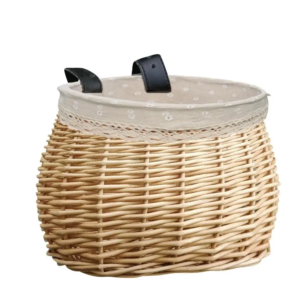 Ретро ручная плетеная ротанговая детская велосипедная корзина, электрическая Автомобильная велосипедная Передняя ручка, плетеная корзина для хранения взрослых, велосипедные корзины