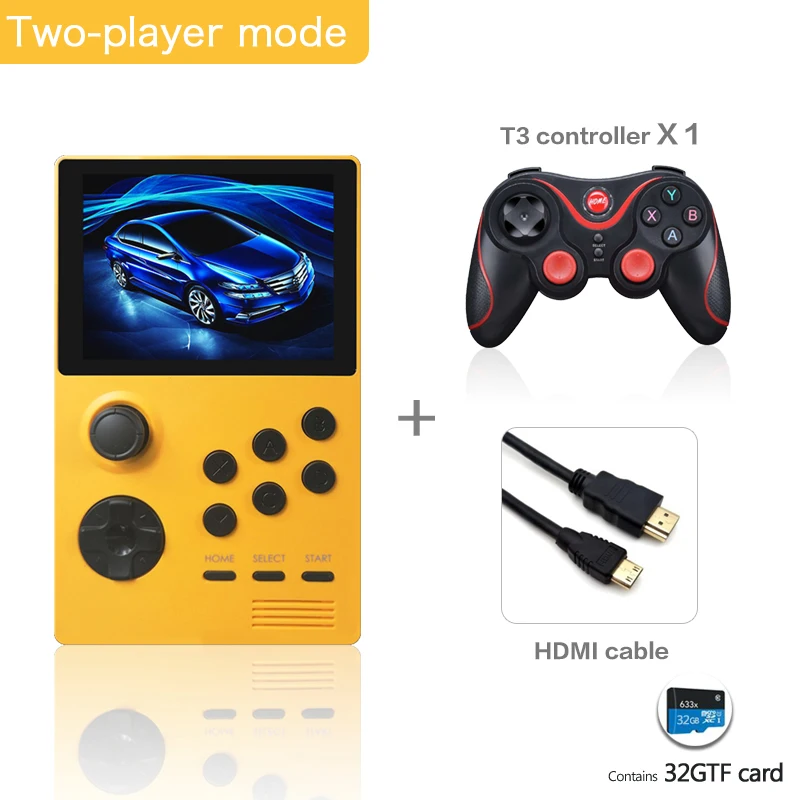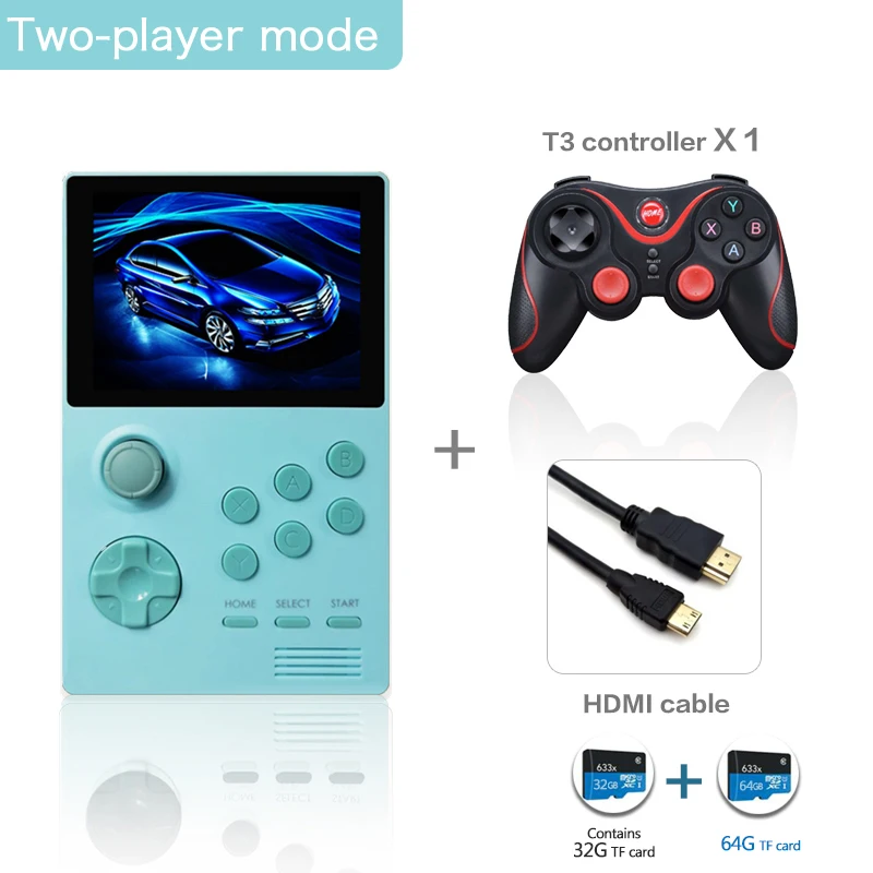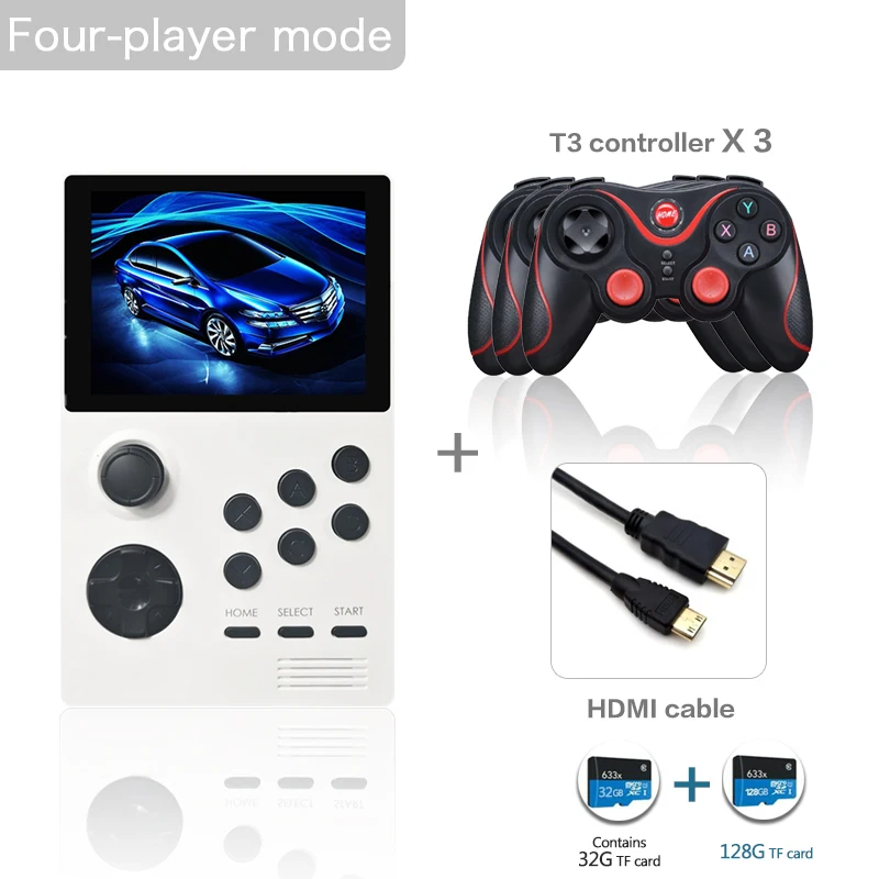 1x портативная игровая консоль 1x портативная игровая консоль + 1 Геймпад + 1 HDMI кабель (опция) 1x портативная игровая консоль + 3 геймпада + 1 HDMI кабель (опция) 1 x Руководство пользователя 1 x зарядный кабель