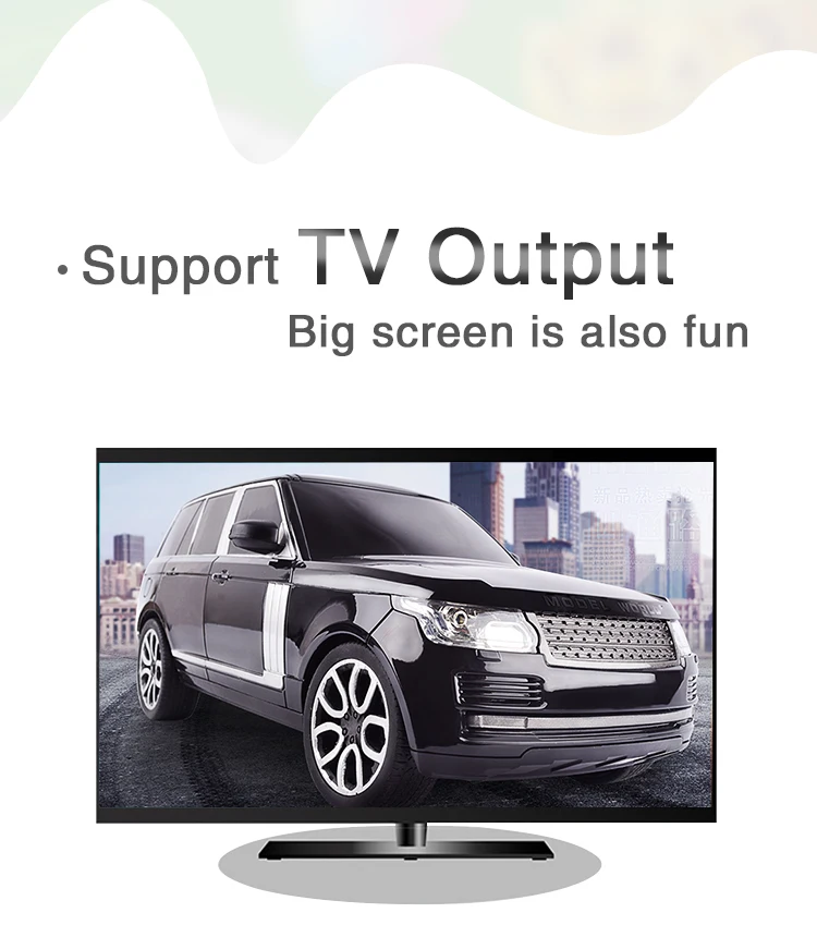 Высокое разрешение IPS Полноэкранный сенсорный экран, более удобный опыт. Он может быть подключен к беспроводной bluetooth-гарнитуре и bluetooth-клавиатуре, bluetooth-контроллеру для более удобного воспроизведения.
