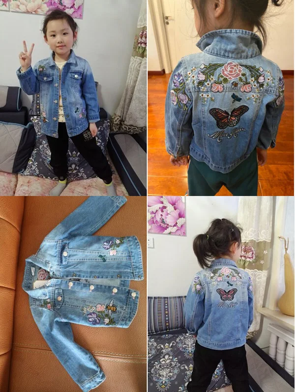 Детское пальто Джинсовая куртка в китайском стиле с вышивкой для девочек