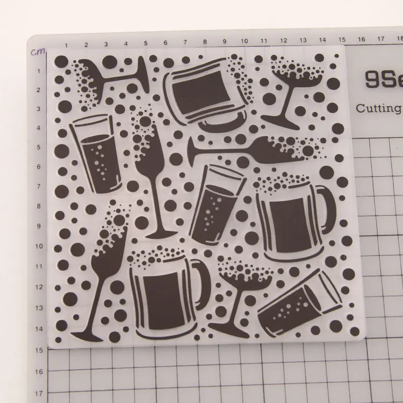 15*15 см винный Стекло Кофе чашки папки для тиснения Пластик Bump Скрапбукинг шаблон DIY Фотоальбом изготовления открыток
