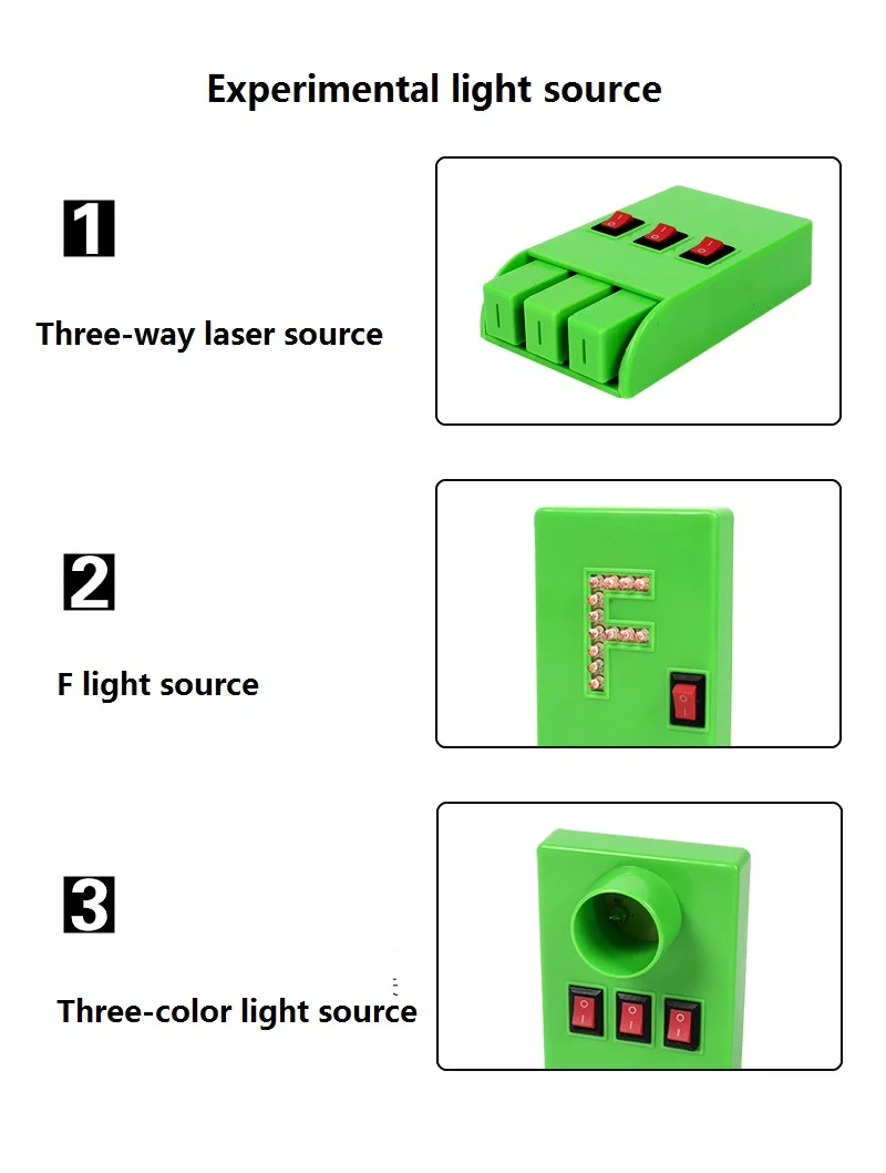 Характеристики:Наименование товара: Набор для экспериментов с физической оптикойНомер модели: JY-22Необходимые батареи: 2 шт. AAA батареи (НетВключено для безопасности) Область применения:Оптический эксперимент, обучающий инструмент по физике, эксперимент по физике, визуализация диафрагмы/отражающий светильник/рефракция на светильник/регулярность изображения линз/прямой светильник/три основных цвета светильник/регулярность изображения выпуклых линз и т. д. Посылка включает в себя:1x F светильник-источник1x трехлинейный лазерный инструмент1x три основных цвета2x рельс из нержавеющей стали3x слайдер1x линейка весов1x выпуклая линза для визуализации (с стержнем)1x вогнутые линзы для визуализации (с стержнем)2x большая подставка для оптической скамьи (Двусторонняя симметрия)1x экран для изображения светильник (белая пластиковая пластина)1х пластина с отверстиями (черная пластиковая пластина с небольшими отверстиями)2x Винты (для рельсов из нержавеющей стали с обеих сторон)4x F кронштейн (для плоского зеркального изображения)1 х коричневое стекло (для плоского зеркального изображения)2x плоское зеркало (для зеркального отражения)1 Маленькая прозрачная раковинаНабор линз 6x1x угловая пластина (жесткая бумага) Примечания:1. Из-за различных настроек монитора и светильник эффект, фактический цвет элемента может быть s светильник ly отличается от цвета, представленного на снимках. Спасибо!2. Возможны отклонения в 1-2 см вследствие измерений вручную.В детстве я обожал смотреть мультик по этой вселенной. Каждая битва прям наполняла адреналином и постоянно хотелось почувствовать себя на... Читать отзыв полностью...