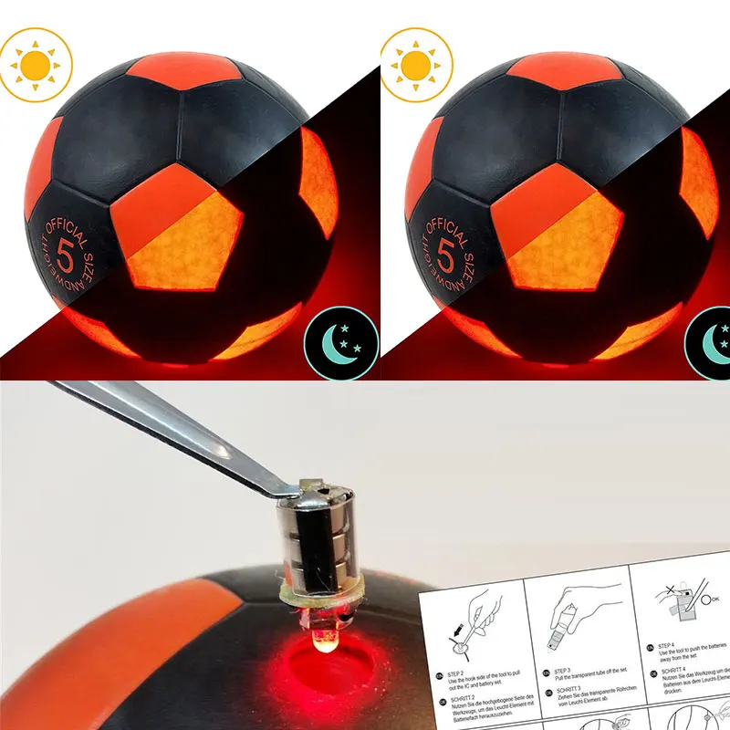 Два высококачественных светодиодный светильник s, расположенный внутри футбольного мяча, делают этот шаровой светильник вверх и светится при прыжке или ударе.
