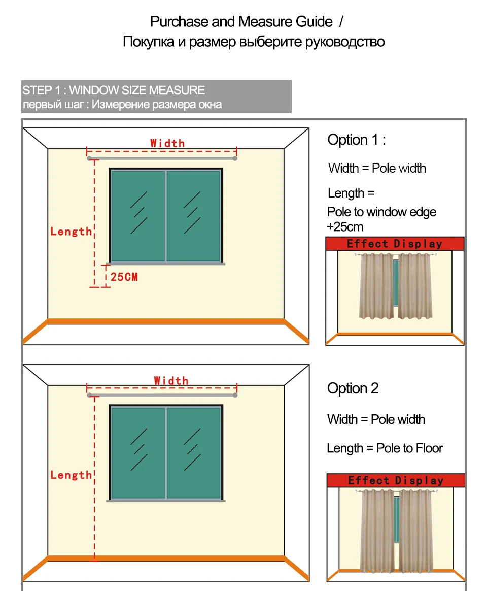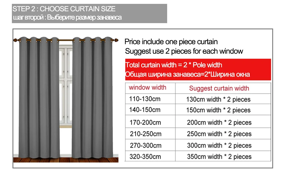 1. Цена указана только за 1 штуку занавески. 2. Чтобы лучше подогнать окно, Измерьте примерно в 2 раза больше вашего окна. Например: ширина дорожки = 150 см, высота = 250 см, мы предлагаем купить 2 шторы w150xl250см. 3. Если вы хотите изменить длину, пожалуйста, оставьте сообщение. Любая длина ниже 270 см имеет ту же цену. 4. Принимаем Индивидуальные размеры (пожалуйста, свяжитесь с нами, если Вы не нашли нужный вам размер.) 5. Возможны незначительные отклонения (1-2 см) из-за запотевания.