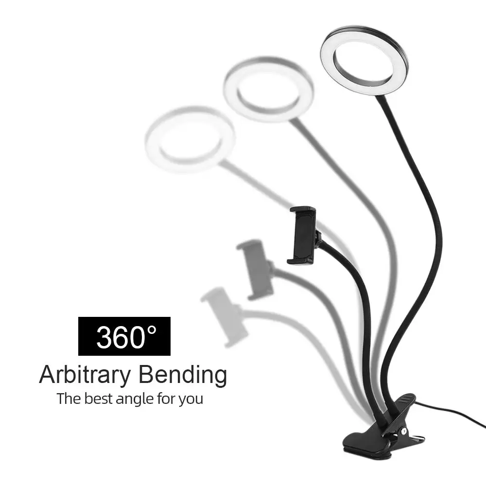 Телефон селфи кольцо светодиодный светильник мобильный стенд для живой поток и макияж Flexibl держатель сотового телефона ленивый кронштейн настольная лампа светодиодный светильник