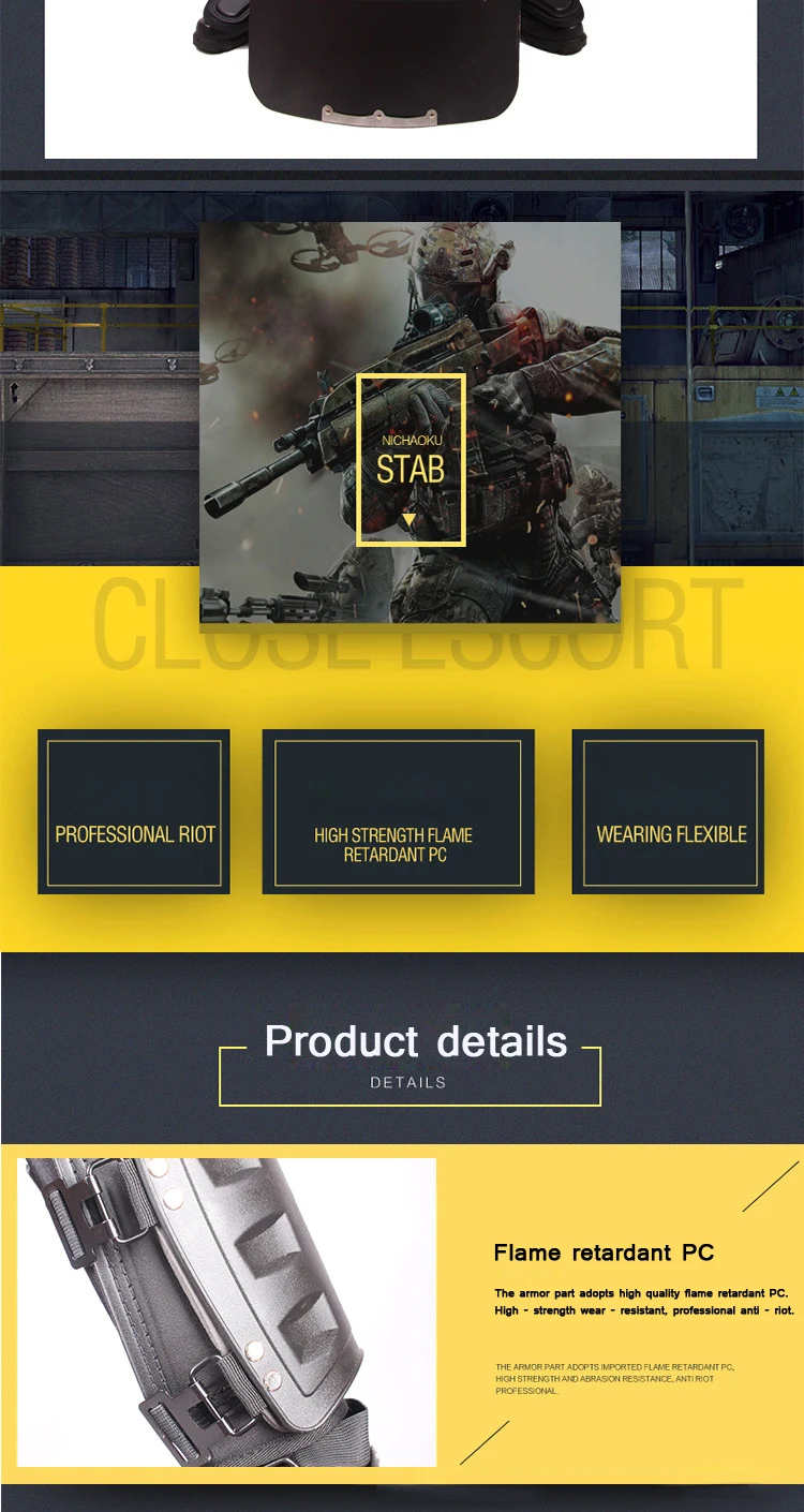 Исполнительный стандарт: GA420-2008 Деревенское Качество: огнестойкая ткань Оксфорд нейлоновый жесткий чехол Спецификация: для полицейских ростом 165ci-185см один тип может регулировать размер плеча и талии в соответствии с их ростом с помощью соединительного ремня Гибкость ношения: его легко носить и снимать. После одевания достаточно для свободного движения рук и тела человека, таких как колени, прыжки, приседания, бег, смотреть вниз и переворачиваться. 500 Н Липучка QQ Совместимость: & GT;7. Вкл/см3 Прочность соединительного ремня: & GT;2000 n Сопротивление уколу: 20J Ударопрочность: 120дж Поглощение в ударной энергии: 100 джоулей Огнезащитное свойство: время после горения поверхности защитных частей должно быть не менее 10 с Особенности дизайна: 1. Съемные желчные сердечники с защитой от ударов могут использоваться спереди и сзади, а другие защитные сердечники могут быть заменены; 2. 2. Гарда-отстегивающийся ножевой слой; 3. Добавьте Регулируемый Специальный защитный мешок и миску, что решает проблему похода полицейских в туалет, одновременно защищая файл; 4. Контактная часть представляет собой медленный средний слой для поглощения ударов, поэтому ее удобнее носить и имеет лучшую воздухопроницаемость 5. Независимая защита локтя, сустава руки и колена делает носителя более гибким. Площадь защиты: р 1. 08 м 2 Вес: 8,5 кг