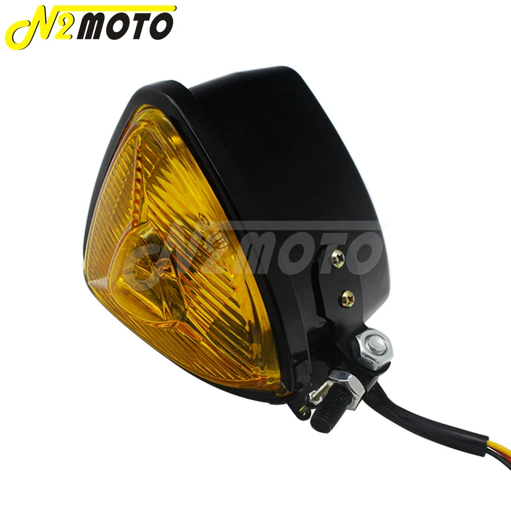 Для Harley Cafe Racer Chopper мотоциклетная треугольная фара Янтарная передняя фара H4 12V освещение ретро Маяк желтые линзы
