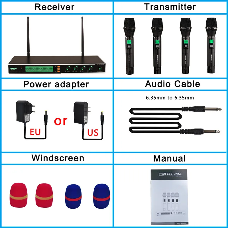 UHF 4*200 Регулируемая частота металлический Ручной ЖК-экран умный вариант функция отключения звука профессиональная микрофонная система для DJ Partry HomeFreeboss