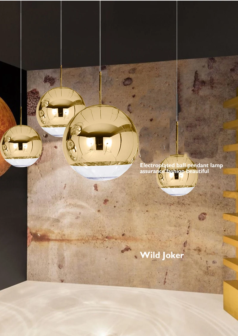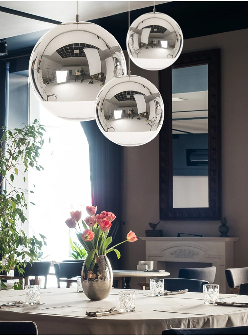Современный Серебряный зеркальный подвесной светильник-шар Глобус стеклянный светодиодный E27 домашний Декор Гостиная Спальня Вилла роскошный подвесной светильник